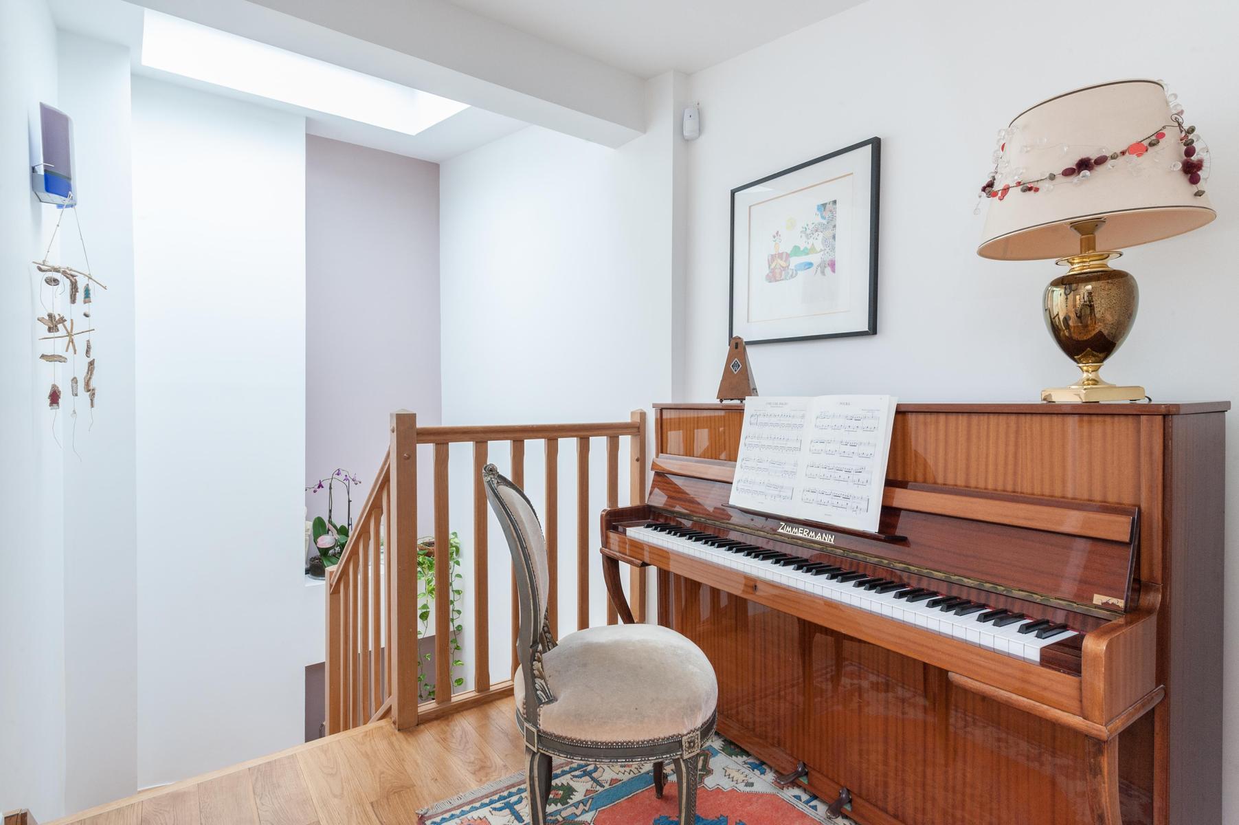 Le salon principal a flotté jusqu’au sommet de cet appartement, et avec juste un soupçon de division entre la cuisine, le salon et la salle à manger, votre chemin sera aussi libre que le soleil qui tourbillonne à travers cet espace élevé. Les deux chambres à coucher se trouvent en bas de l’escalier, et ici, le mobilier élégamment contemporain offre un délicieux contraste avec les parquets d’origine.