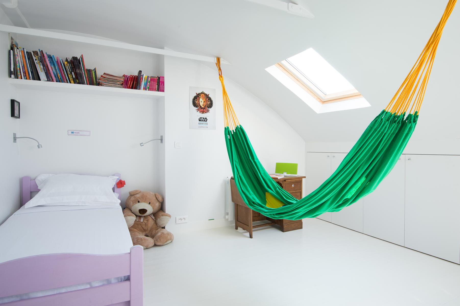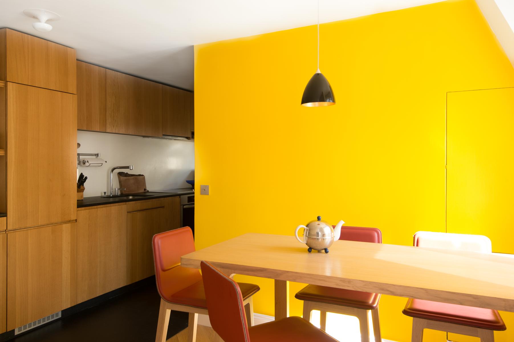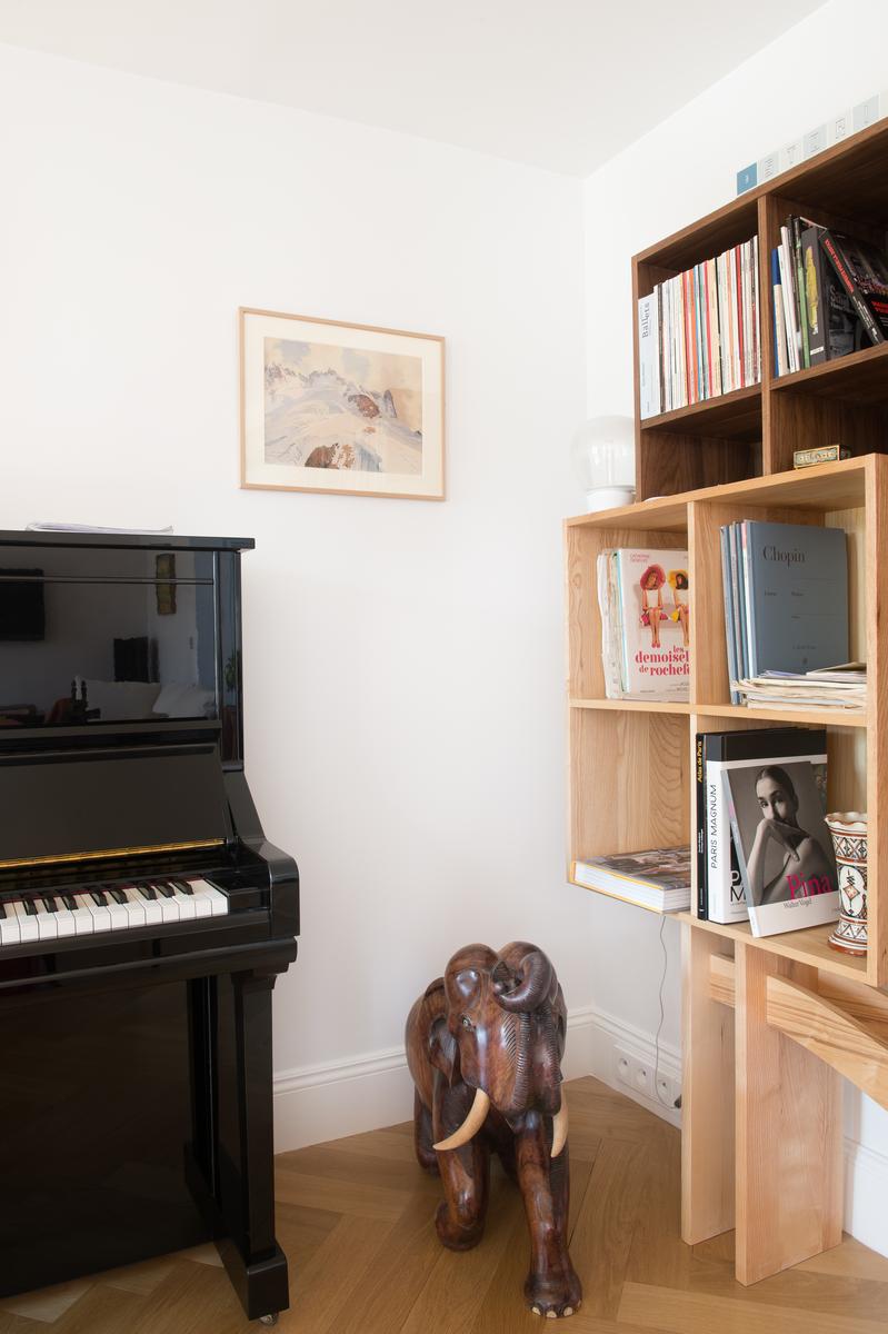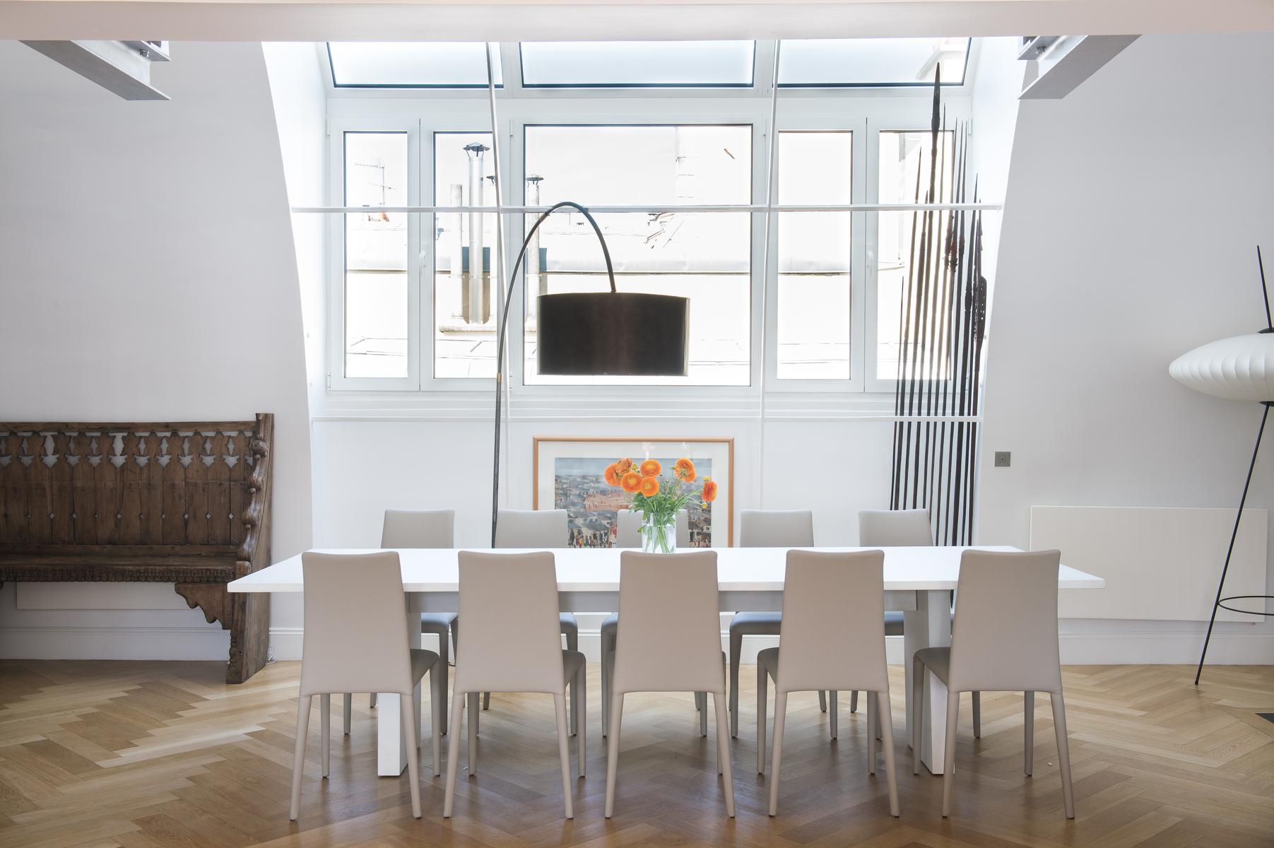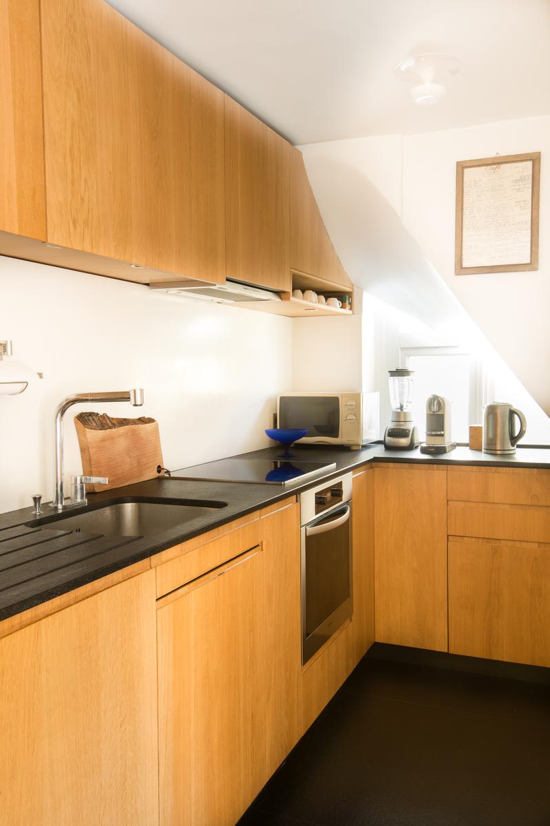 Récemment rénové par vos hôtes, cet ancien atelier de peintre est situé dans une jolie rue de Montmartre – South Pigalle. En entrant au cinquième étage, vous trouverez la cuisine colorée au bout du couloir sur votre gauche. Droit devant est la salle à manger – blanc lumineux, double hauteur et tout à fait frappant, avec une table à manger moderne en contraste avec les pièces anciennes dans toute la pièce (l’élégant banc est du Rajasthan). La porte ouverte vous mène au salon confortable, où trois canapés mal assortis entourent une table en bois patiné.