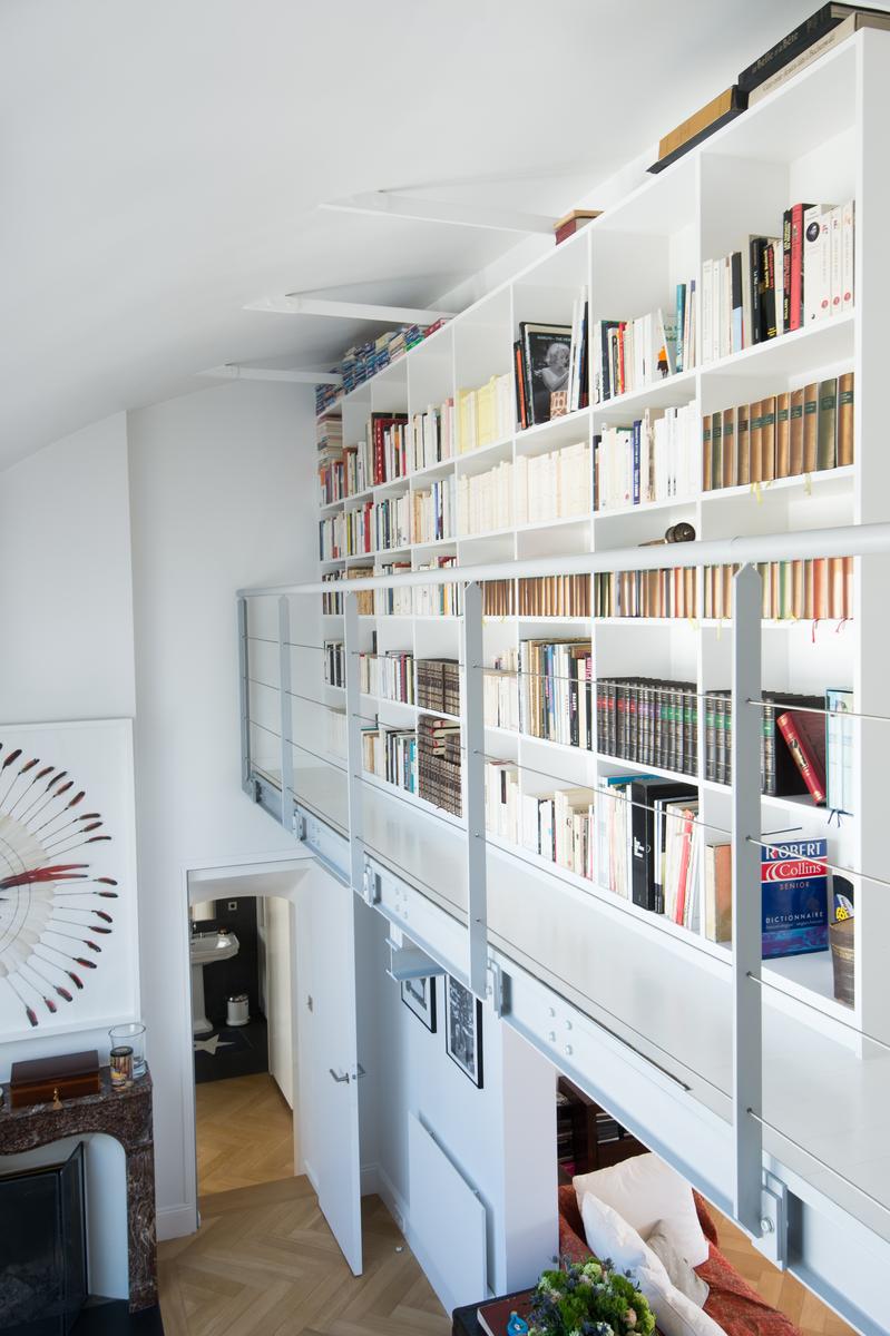 Il y a aussi deux chambres à coucher privées à ce niveau – la chambre principale peut être atteinte par la salle à manger, et la chambre double se trouve à l’extérieur du salon. Et ce n’est pas tout. L’escalier en colimaçon de la salle à manger vous mène à une troisième chambre à coucher, une salle de douche et – le meilleur de tous – les étagères hautes et bien garnies que l’on peut apercevoir depuis le salon en contrebas.