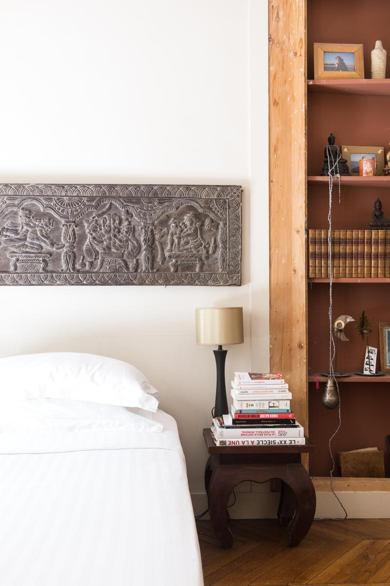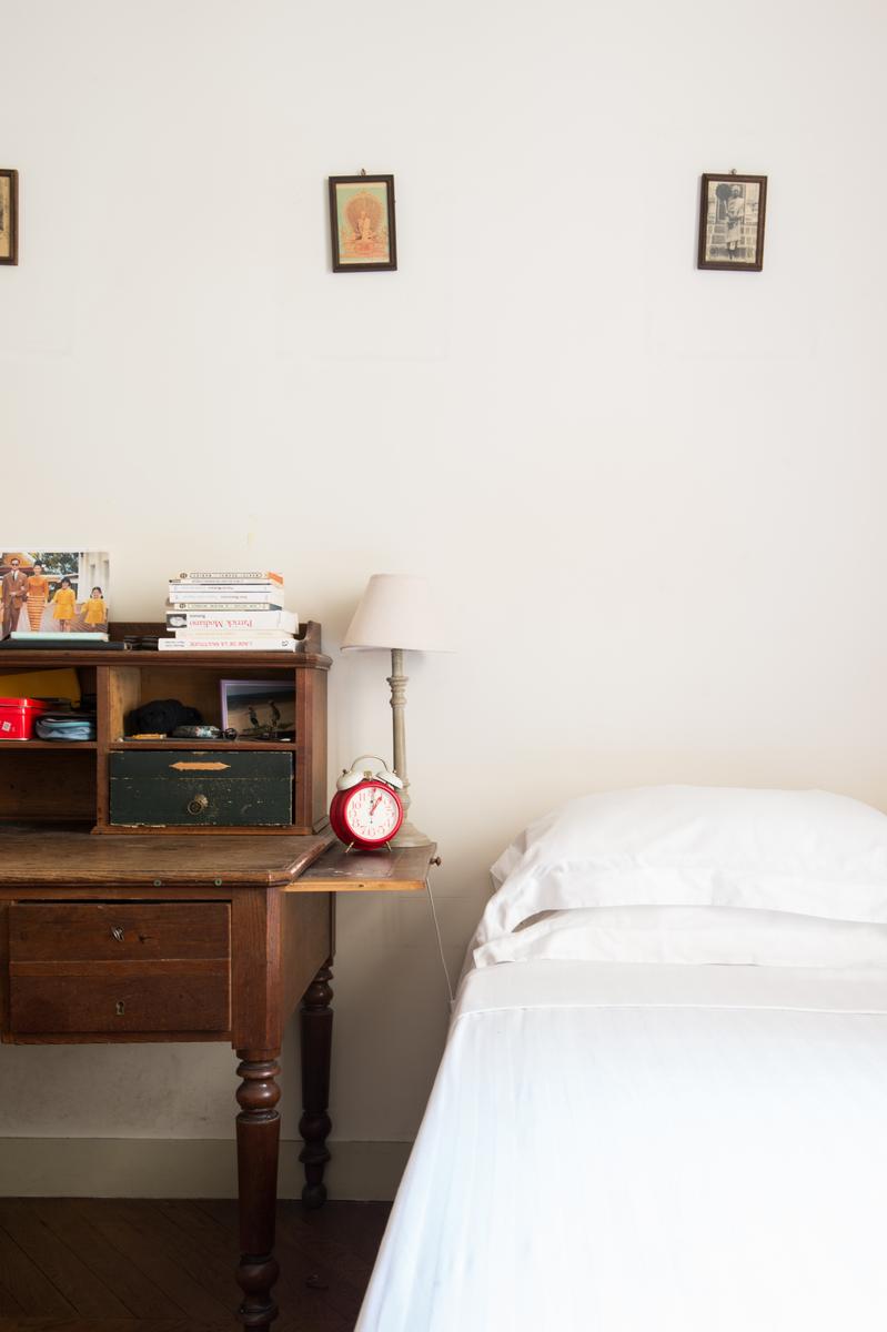 Au premier étage, il y a une salle de toilette, une chambre à coucher de reine et la chambre des maîtres – un espace de caractère, avec un lit king size sous une frise orientale. Et au-dessus, il y a une autre salle de toilette, une salle de bain et trois autres chambres à coucher, toutes pleines de caractère.