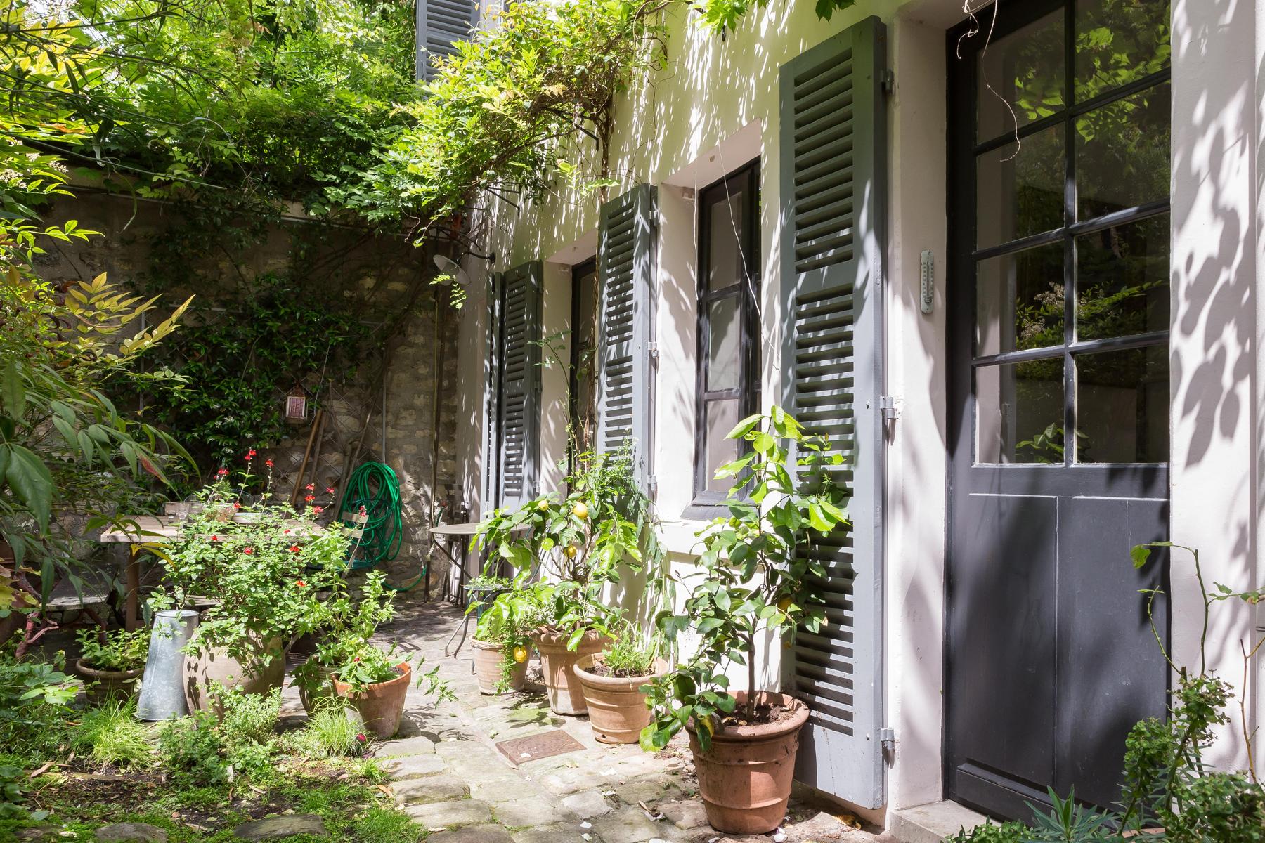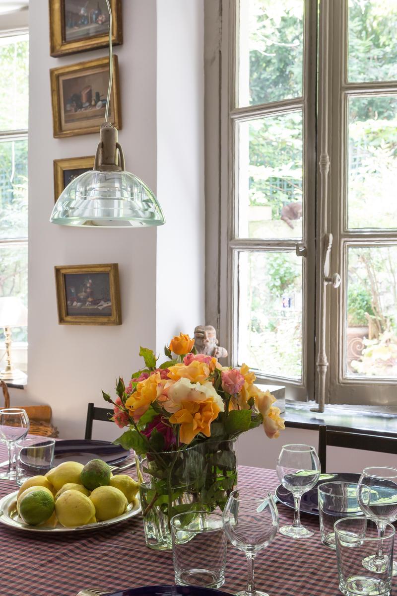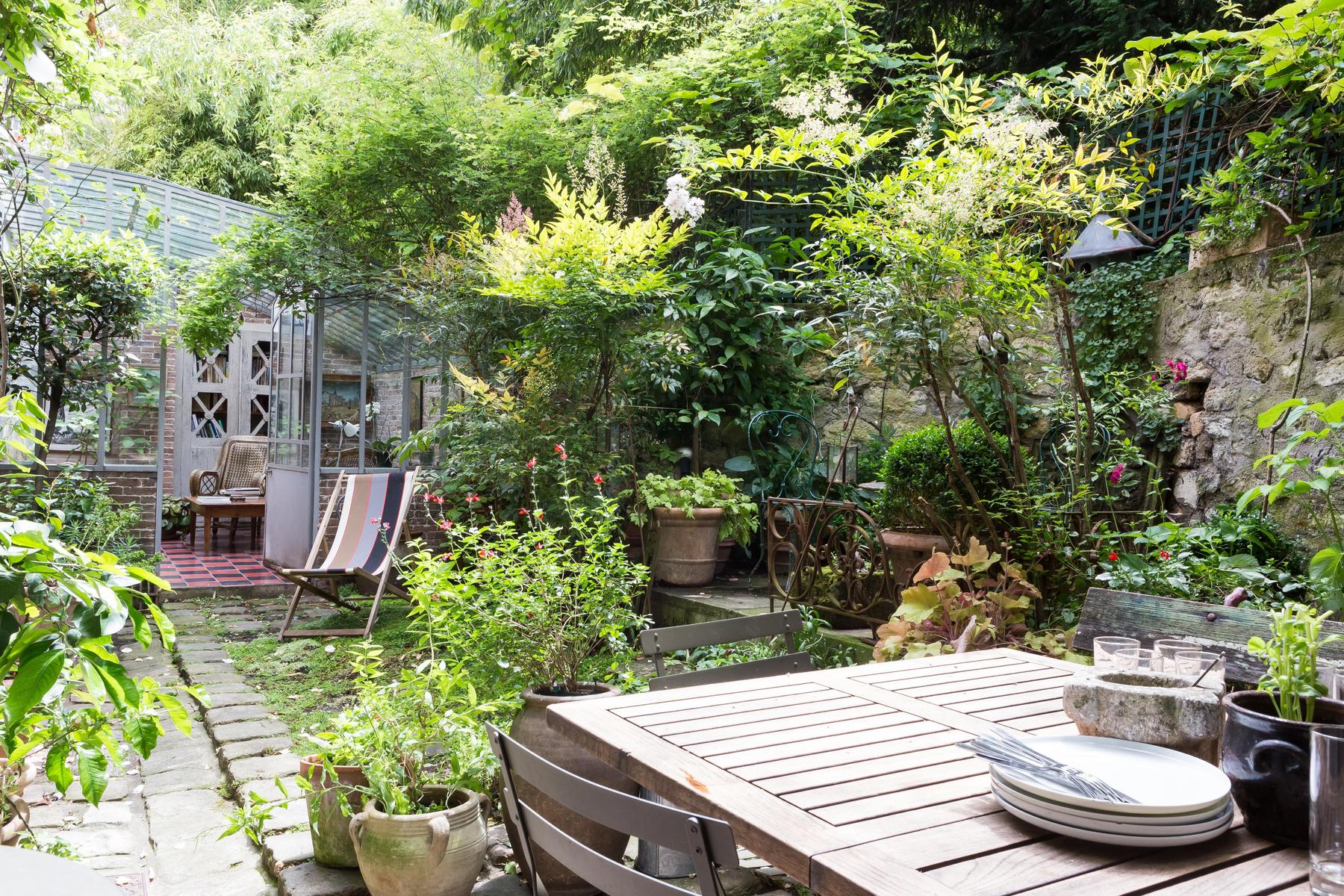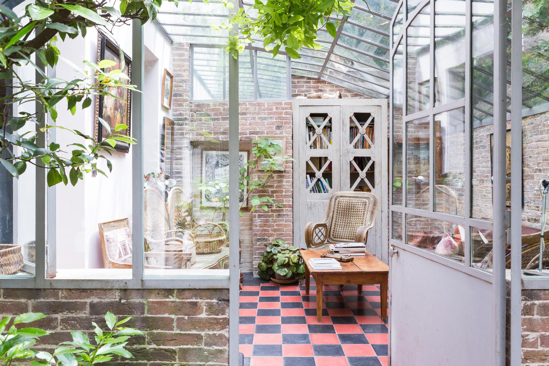 Dans une rue tranquille du quartier latin, l’intérieur soigneusement conservé de la rue Lhomond dégage un charme d’antan. Du canapé TV de l’étage supérieur aux coussins de couleur joyau, à la cuisine élégante avec son plafond à poutres et ses murs de peintures, il y a plein d’éléments de charme. Mais le secret le mieux gardé de cette maison pourrait être la véranda remplie de lumière qui mène au jardin muré pittoresque. Ici, des pots en terre cuite et des arbres élégants bordent le sol pavé. Prenez une chaise longue et mettez-vous à rêver – vous vous sentirez loin du buzz de la ville.