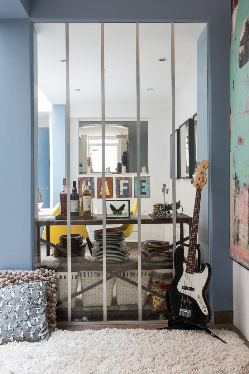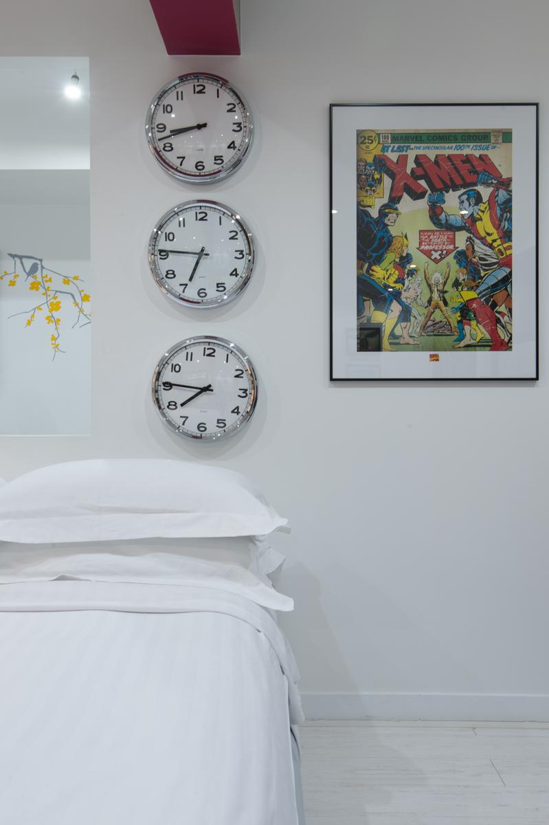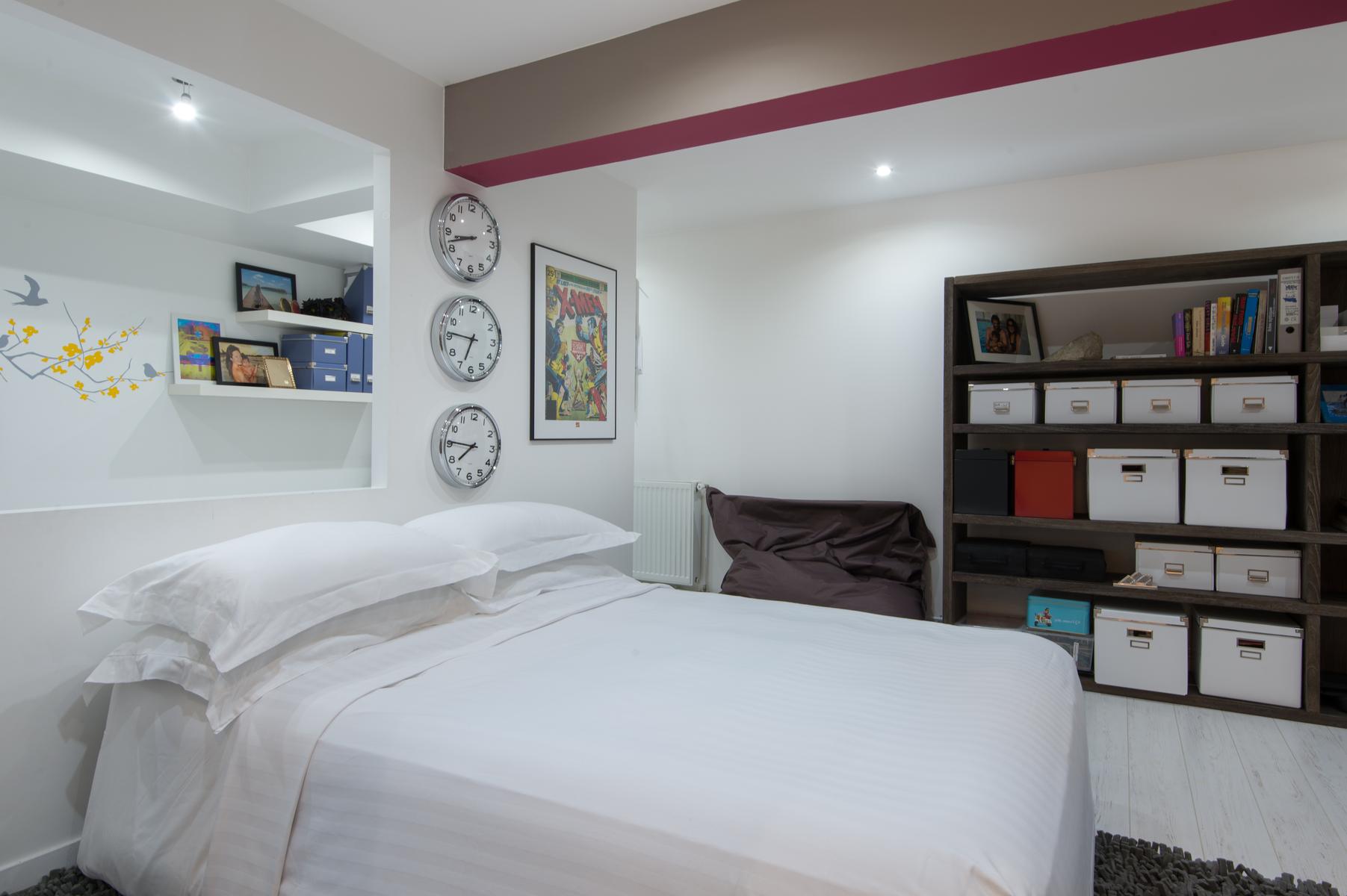 Montmartre – South Pigalle regorge d’endroits élégants, et cette maison de ville est certainement l’une d’entre elles. Vous arriverez d’abord à l’espace de vie ouvert, éclairé par un puits de lumière géant. Tout droit devant, il y a une table à manger – avec des chaises jaune acide – et puis il y a un coin cuisine élégant à droite. Au-delà du bar du petit déjeuner, il y a un coin salon, où un long canapé d’angle fait face à une impressionnante télévision murale. En face, un escalier en verre et métal descend jusqu’au bureau du rez-de-chaussée, qui est plein de livres (dont beaucoup sur le cinéma) et de sculptures saisissantes.