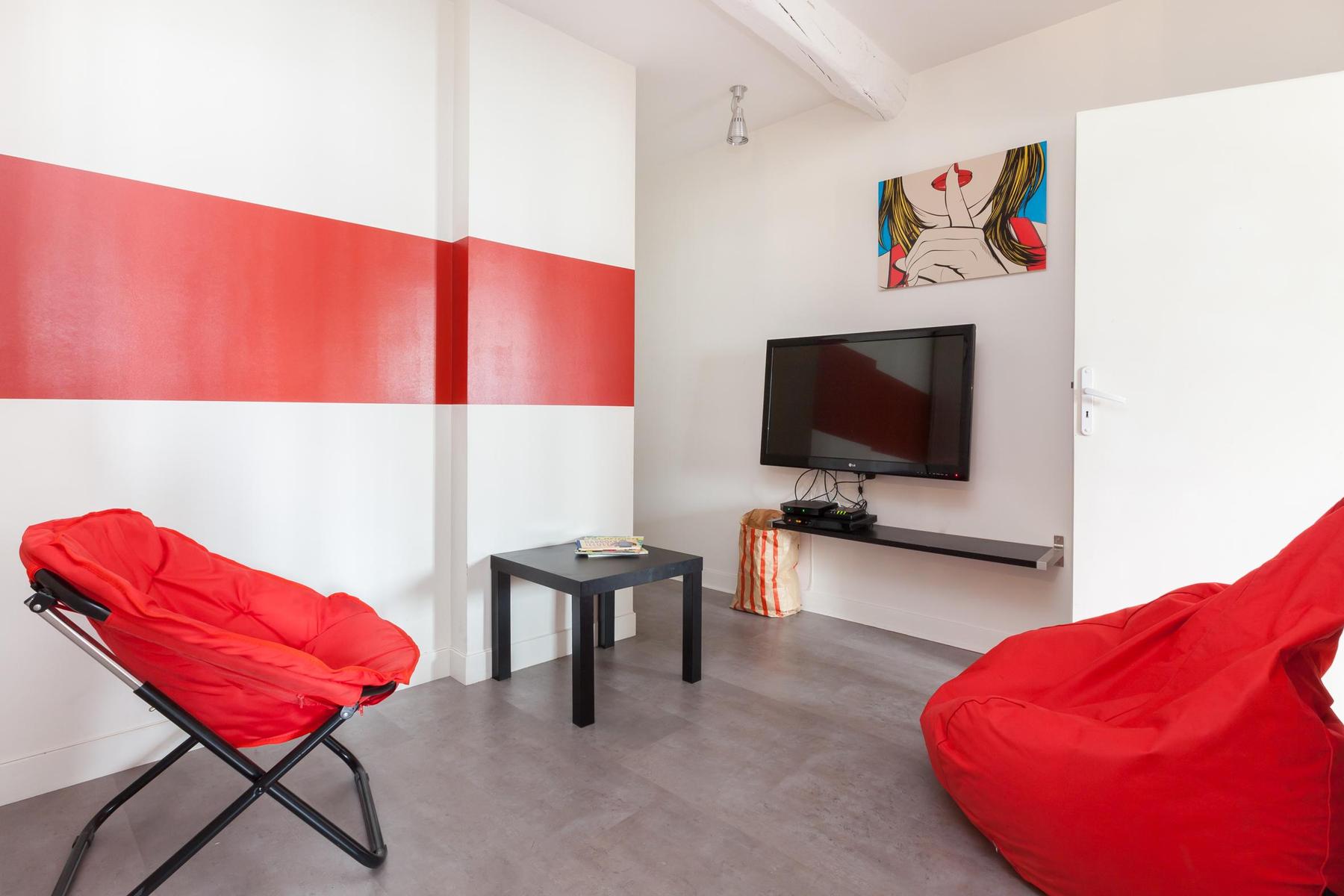 Cette route romaine sinueuse est l’une des plus anciennes résidentes de Paris – et il y a aussi quelque chose d’impérissable dans cette maison. Au-delà d’une façade charmante et désuète, des heures peuvent se transformer en jours au fur et à mesure que vous vous installez dans le salon confortable et de caractère. Des poutres ensoleillées courent largement au-dessus de la tête, tandis qu’un vieux confessionnal d’église murmure ses récits des âges passés. Mais le ton est loin d’être sépia dans le petit écran, tous les fauteuils pop art et les chaises rouges – et les chambres à coucher sont aussi invitantes que la tradition pourrait le dicter.