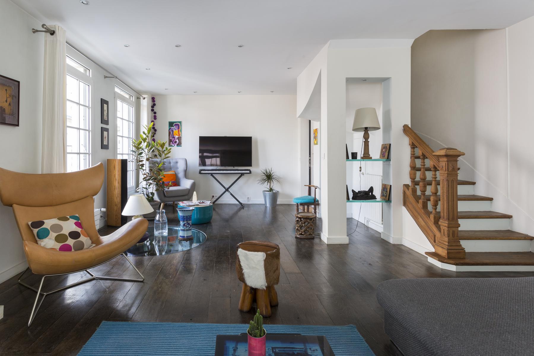 Rue Ravignan II est une maison de deux chambres, une salle de bain à Montmartre Sacré-Coeur – Sud Pigalle. Du salon, avec son charmant mélange de pièces au design épuré et d’accessoires jazzy, à l’audacieuse cuisine écarlate et blanche, les espaces de vie de cette maison ont un bel air décontracté. Les chambres – à la fois au plafond à poutres et simplement meublées – sont tout aussi décontractées, tandis que la salle de bains en marbre est étonnamment décadente. A l’extérieur, les rues sont bordées de cafés et de restaurants, et cette zone artistique est également pleine de musées. Et la station de métro la plus proche – Abbesses – n’est qu’à cinq minutes à pied.