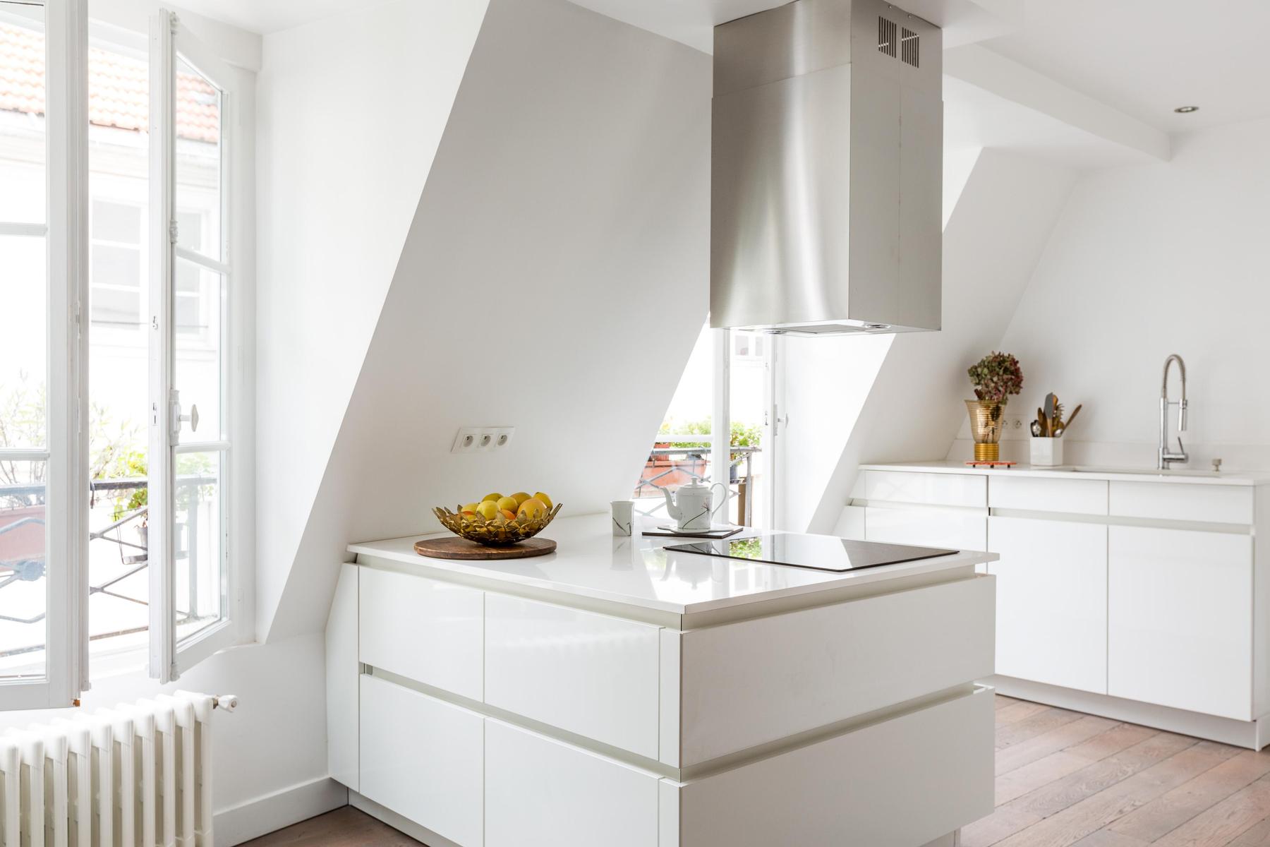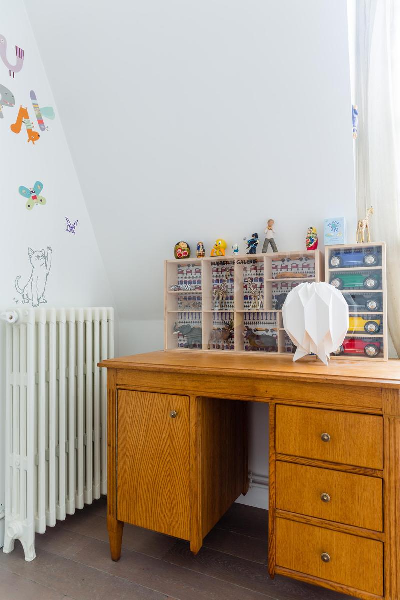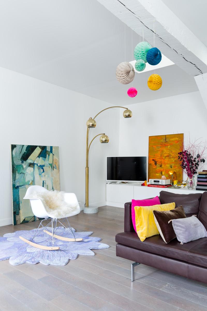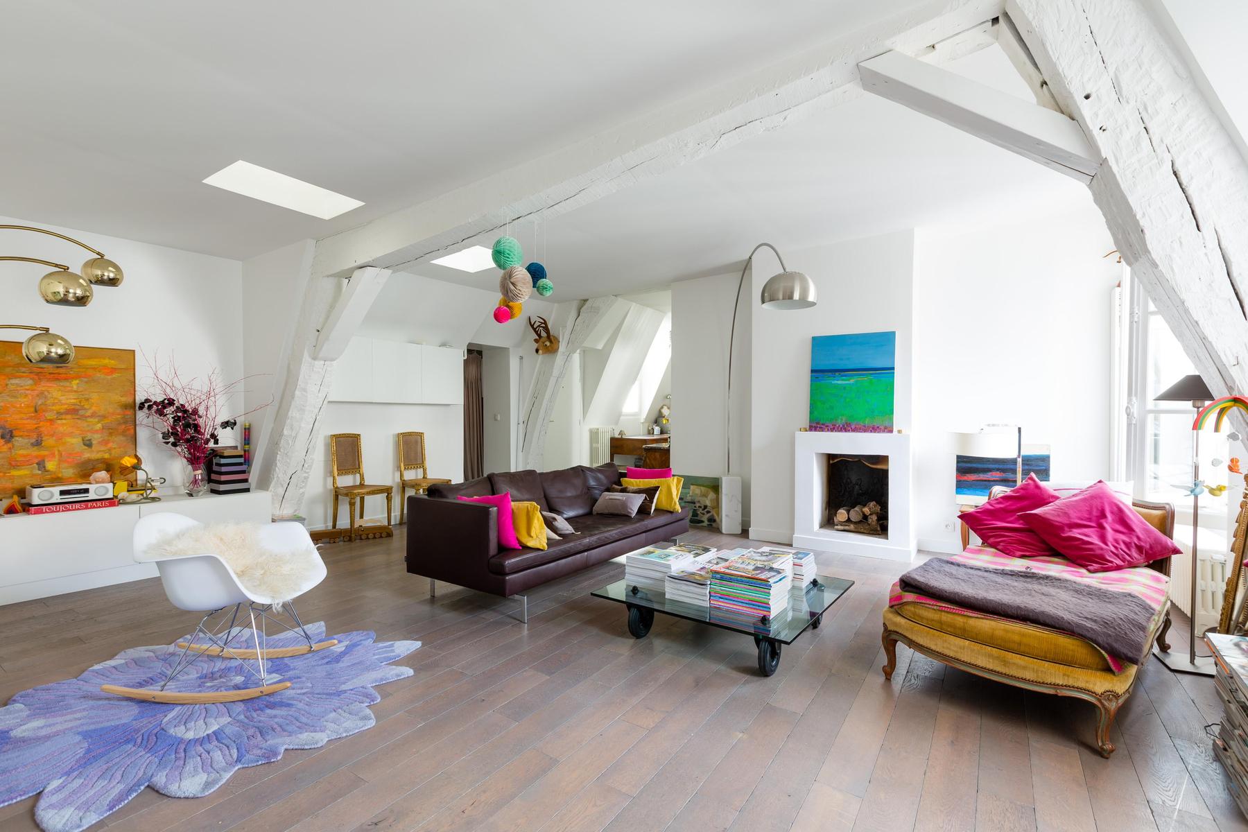 Sur cette rue animée du Marais, la splendeur du XVIIe siècle et la créativité ludique s’entrechoquent. Les poutres anciennes de cette maison sont peintes en blanc comme ses murs, et sur les planchers de bois, les chaises en Perspex et les tables en verre se perchent le long des coffres en noyer. Avec sa juxtaposition intrigante d’ancien et de nouveau, cette maison est une pour toutes les humeurs. Placé sous un grand chandelier en cristal, le bureau antique est un endroit idéal pour étudier, tandis que le fauteuil en velours jaune de la chambre à coucher principale, recouvert d’une peau de mouton douce et entouré de diverses œuvres d’art, est un endroit doux et relaxant.