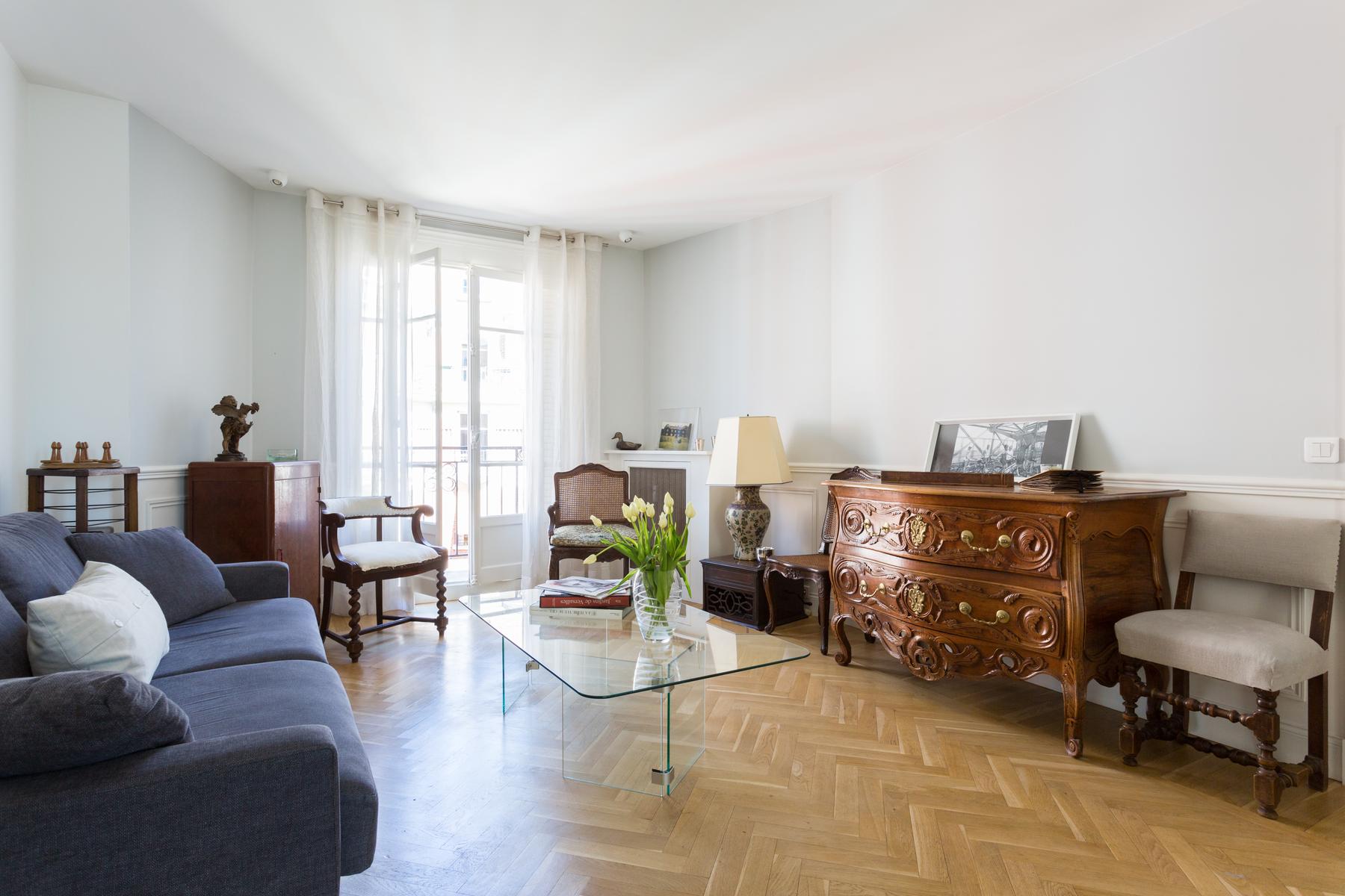 La rue Saint-Romain II est une maison de deux chambres à coucher, deux salles de bains à Saint-Germain-des-Prés. Décorée dans des couleurs subtiles, avec de beaux parquets, l’espace de vie ouvert de cette maison est meublé avec de charmantes pièces historiques – la table à manger antique de la cuisine et la poitrine sculptée du salon sont particulièrement belles. Les chambres à coucher sont toutes les deux simplement faites, le maître se distingue par sa suite soignée. La rue elle-même est calme, mais vous trouverez de nombreux cafés et restaurants locaux à proximité, et vous êtes à proximité du Bon Marche et du magnifique Jardin du Luxembourg. La station de métro Vaneau n’est qu’à deux minutes de marche d’ici.