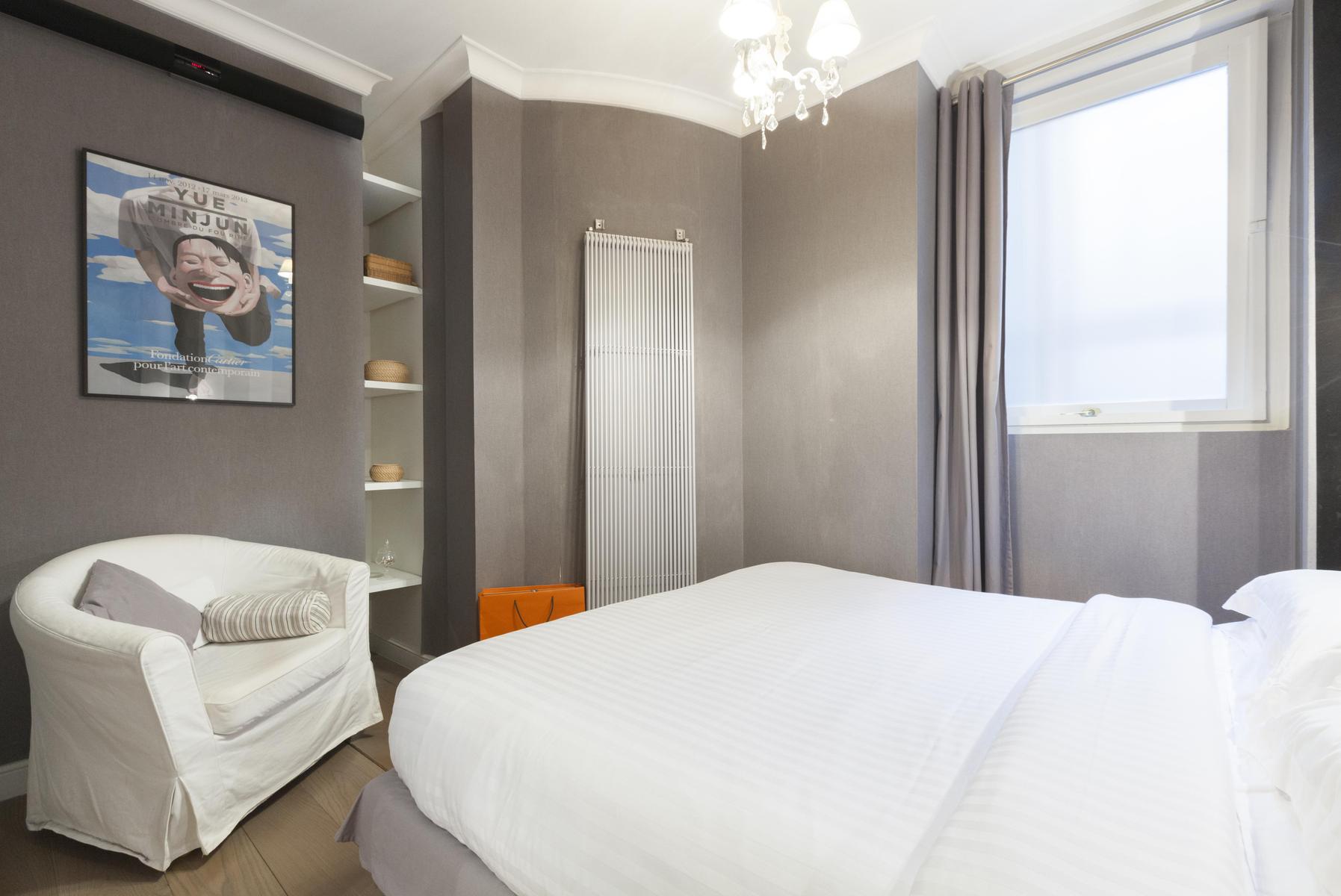 Il s’agit d’un opus moderne, en résonance avec le glamour, où le mobilier classique et les lustres accentuent les pièces. Le décor épuré et minimaliste frappe la note parfaite, et chaque espace est un mouvement d’ardoise et de tons blancs. La lumière naturelle danse sur le refrain du piano à queue central où vous aussi vous graviterez à la fin de la soirée, à moins que vous ne preniez un intervalle relaxant dans le quatuor de peluches du salon, ou que vous ne flânez le long de la Seine voisine pour une sérénade fluviale.