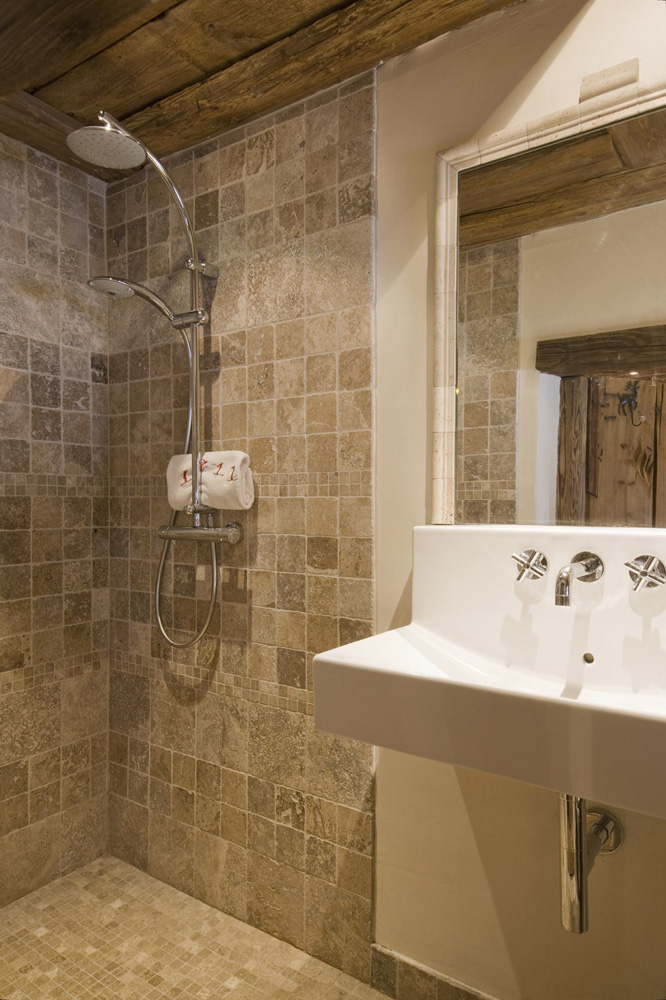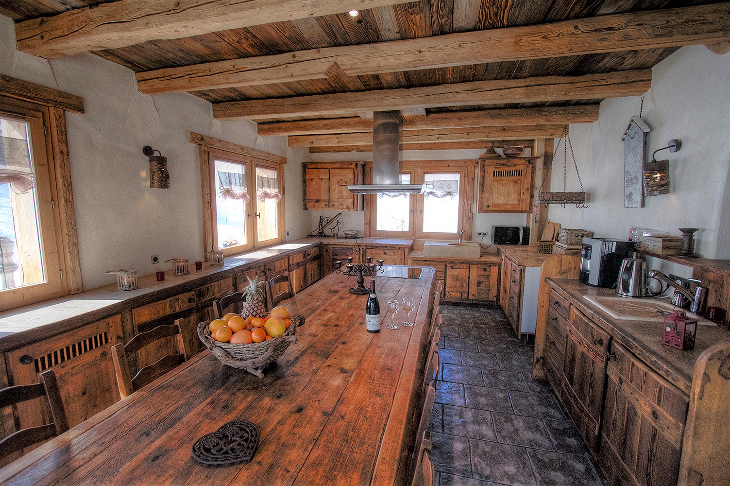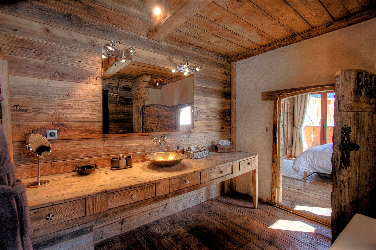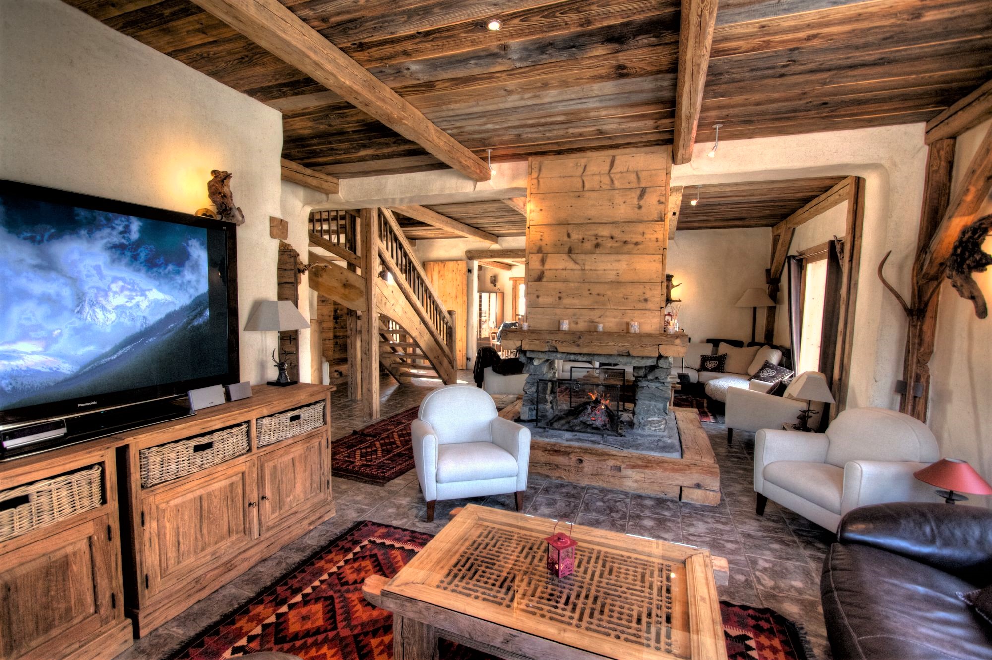 Un chalet authentique avec une décoration au style montagnard chic tout en bois. Ce chalet peut accueillir quatorze personnes dans 6 chambres avec salles de bain et une mezzanine, avec TV et poufs.