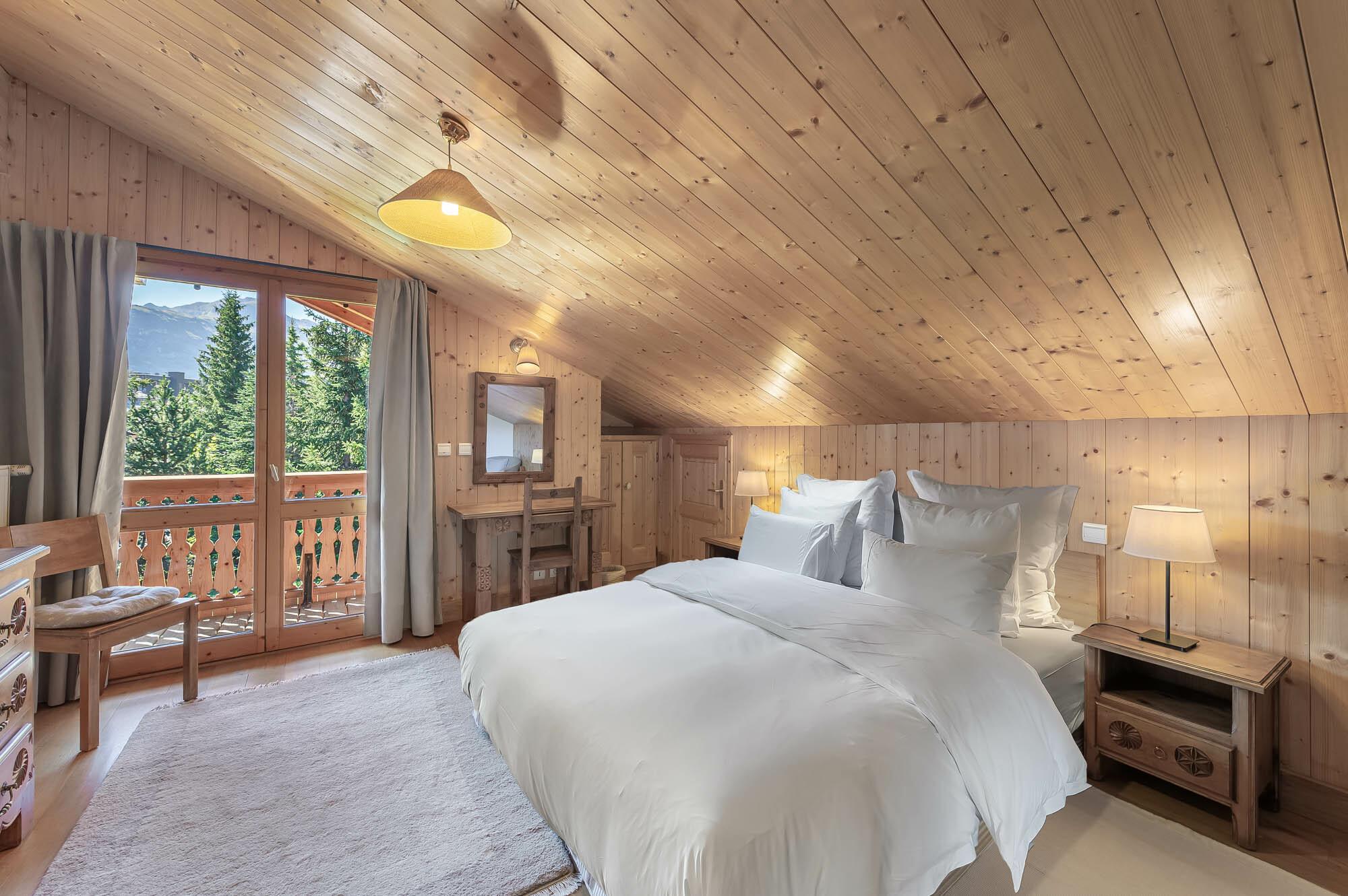 Les six chambres en suite accueillent les convives dans une atmosphère douce et apaisante, parfaite pour de longues nuits après une journée sur les pistes. L’architecture intérieure marie bois blond, pierre naturelle et tissus chauds pour créer un univers à la fois chic, simple et profondément alpin.