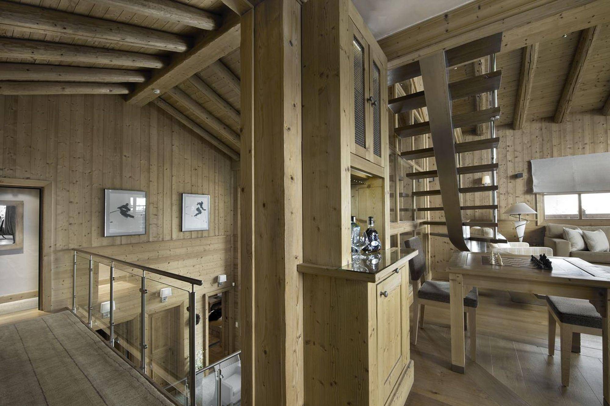 Ce chalet d’exception bordé de sapins et situé à quelques mètres des pistes. Une décoration chaleureuse avec sa cheminée centrale au beau milieu de cette belle pièce de vie salon, salle à manger. Un équipement de loisir et de sport que l’on apprécie après une journée de ski.