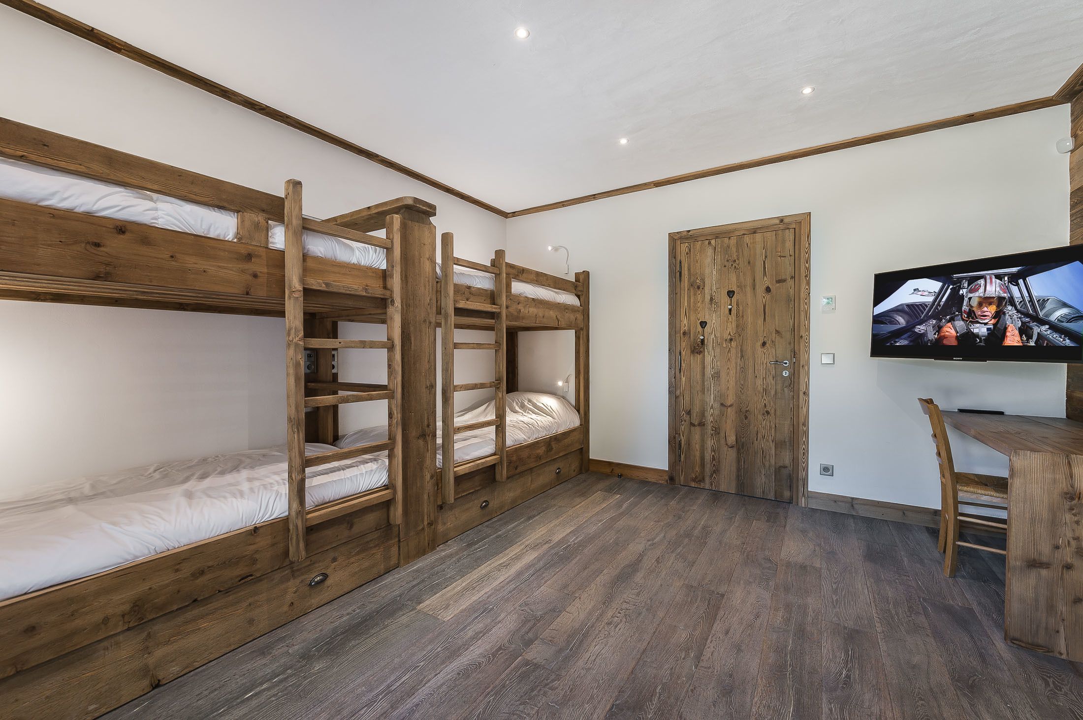 NIVEAU 1/ 3 Chambres doubles salle de douche ou bain en suite avec toilettes dont une avec terrasse. 1 chambre enfants 2 x 2 lits superposés, salle de douche et toilettes en suite, terrasse et placard.