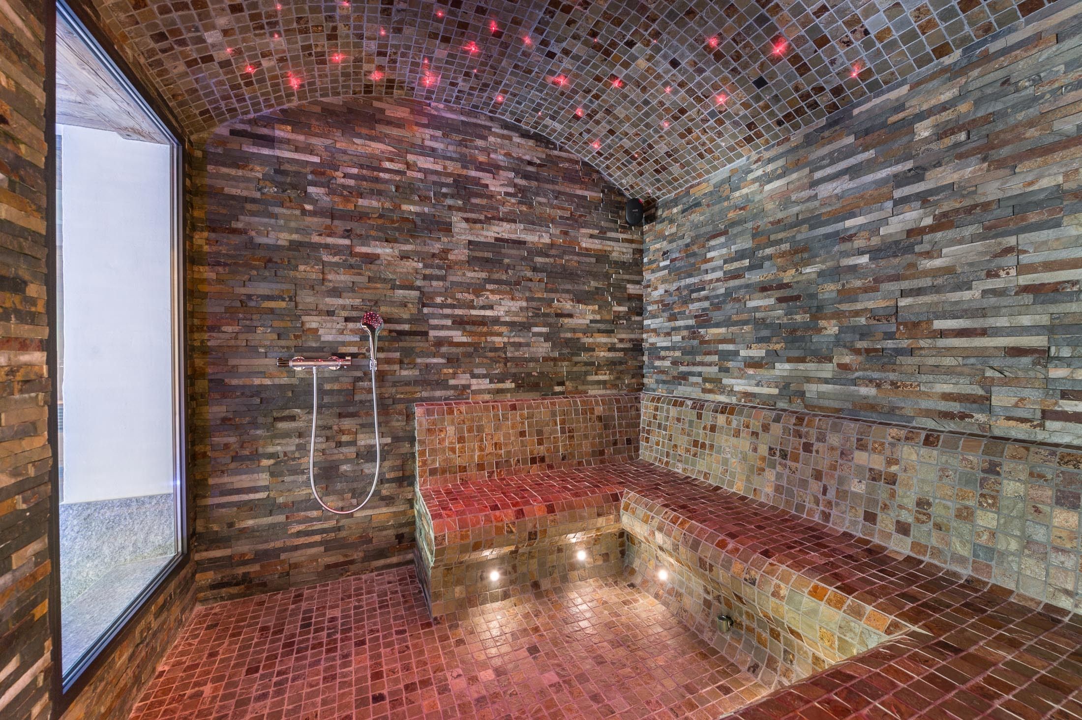 NIVEAU 0/ Ce niveau est totalement l’espace bien être avec sa piscine nage à contre courant, un coin repos, hammam 6 personnes, salle de massage, douche et toilettes.