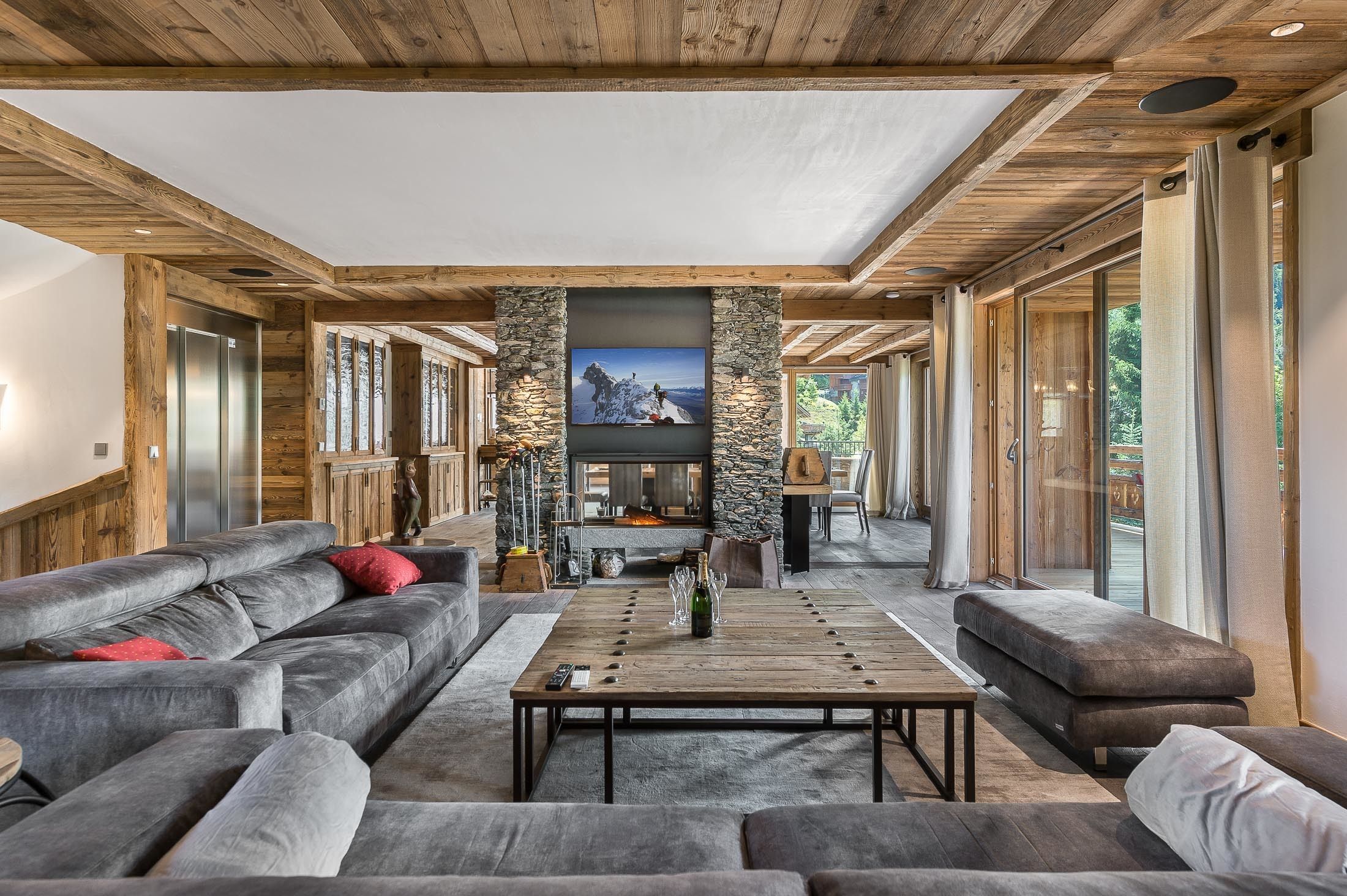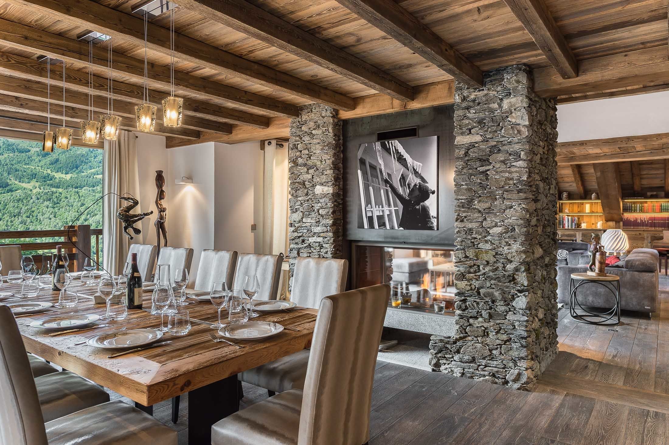 Chalet luxe avec piscine niché dans les sapins, un bien d’exception de 660 m² dans le beau village de Méribel, à quelques minutes du télésiège. Une décoration chic et chaleureuse avec un mélange de matériaux en gardant l’esprit totalement savoyard.