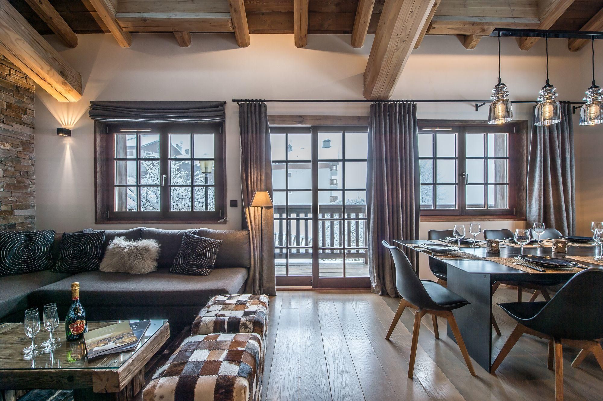 Belle maison de village rénovée d’environ 180m² équipée pour 8 adultes et 2 enfants. une décoration chic et chaleureuse, un intérieur cosy. Un chalet tout confort avec un beau salon confortable équipée d’une cheminée.
