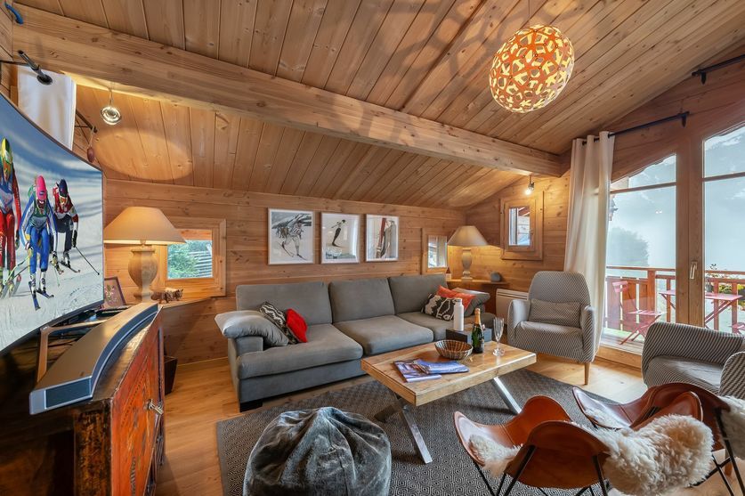 De construction traditionnelle avec le charme du bois qui s’allie parfaitement avec le mobilier contemporain. Un grand salon très cosy avec une cheminée qui réchauffe les cœurs. Un intérieur agréable et lumineux avec de grandes vitres qui permettent d’admirer la montagne. On profite d’une vue magnifique sur les sommets et on discute ensemble des exploits de la journée de ski.