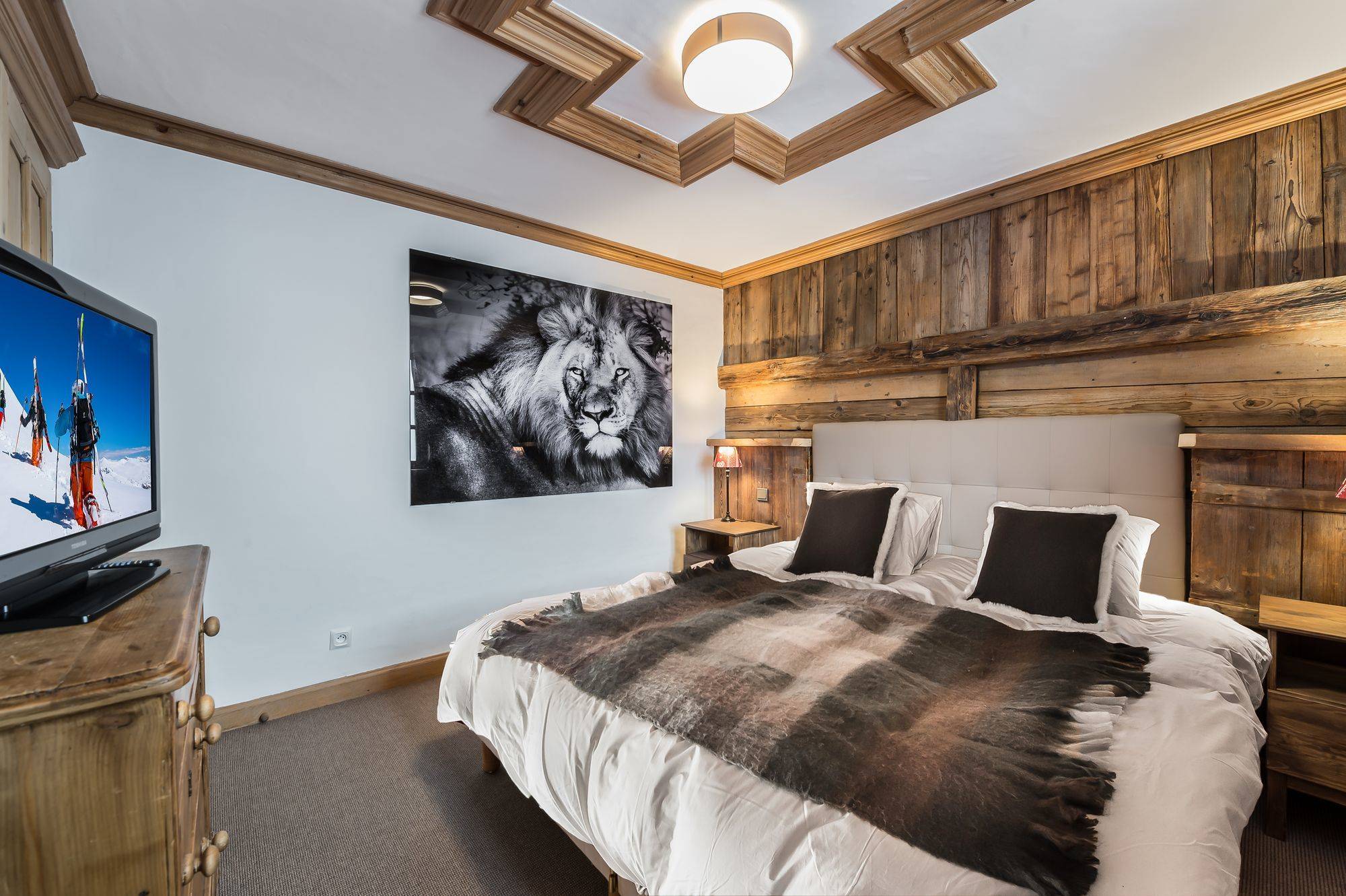 Très luxueux avec une décoration haut de gamme dans un style contemporaine en gardant une ambiance traditionnelle. Les propriétaires ont su alliés les matériaux nobles avec un mélange subtil de différentes matières tel que fourrure, cuir, métal, bois et la pierre donne un aspect chic et cosy à ce beau chalet.