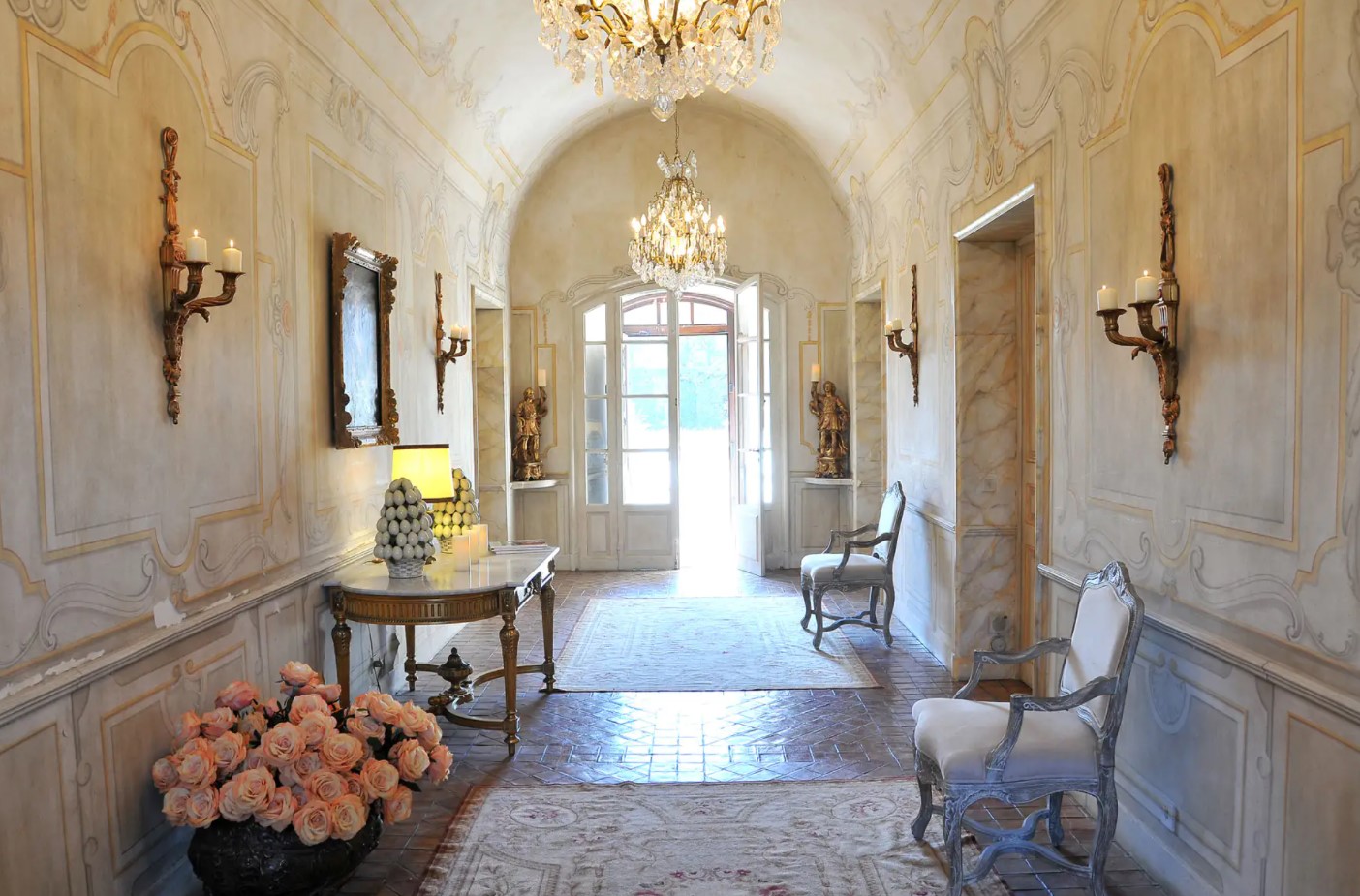 Un mélange de meubles anciens français formels et occasionnels et de décorations ont été utilisés dans tout l’intérieur.