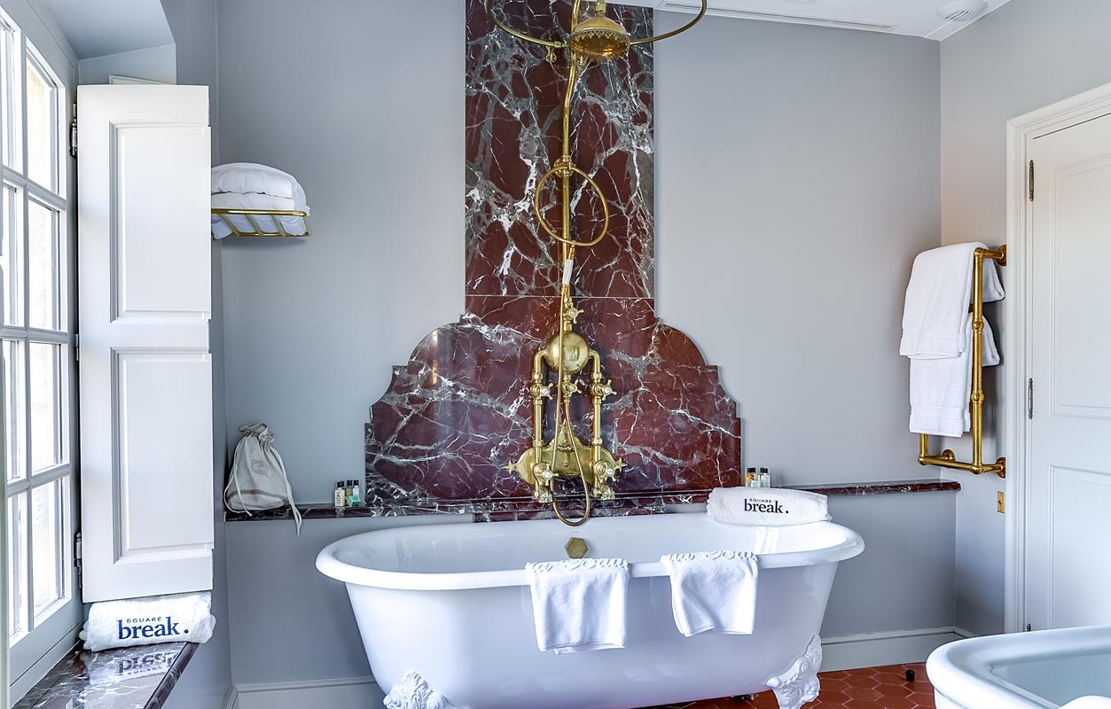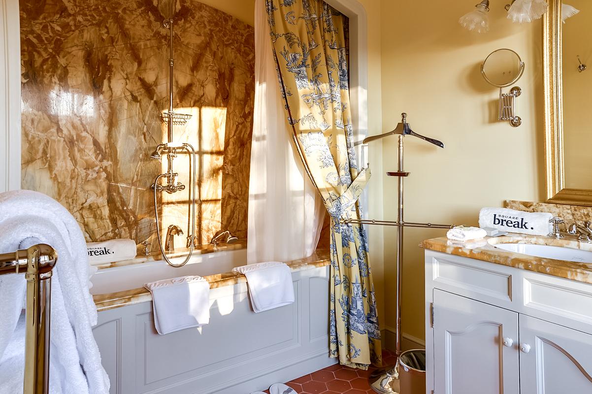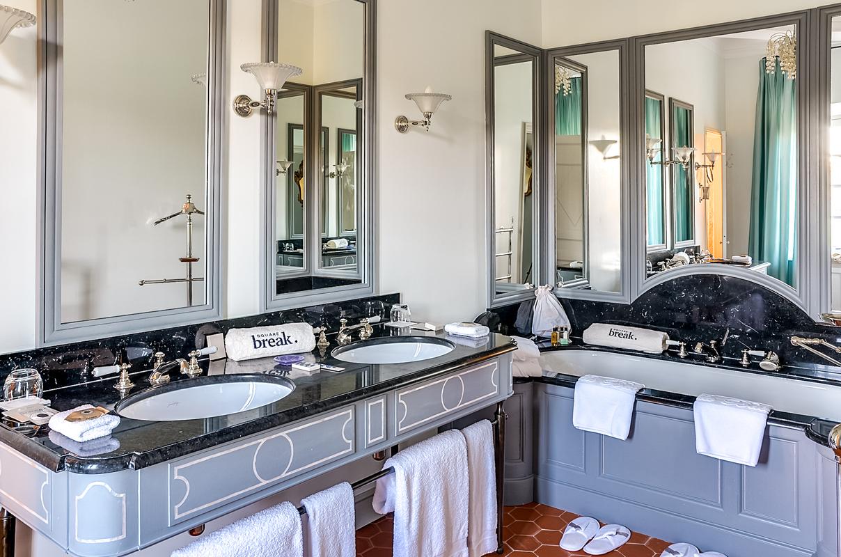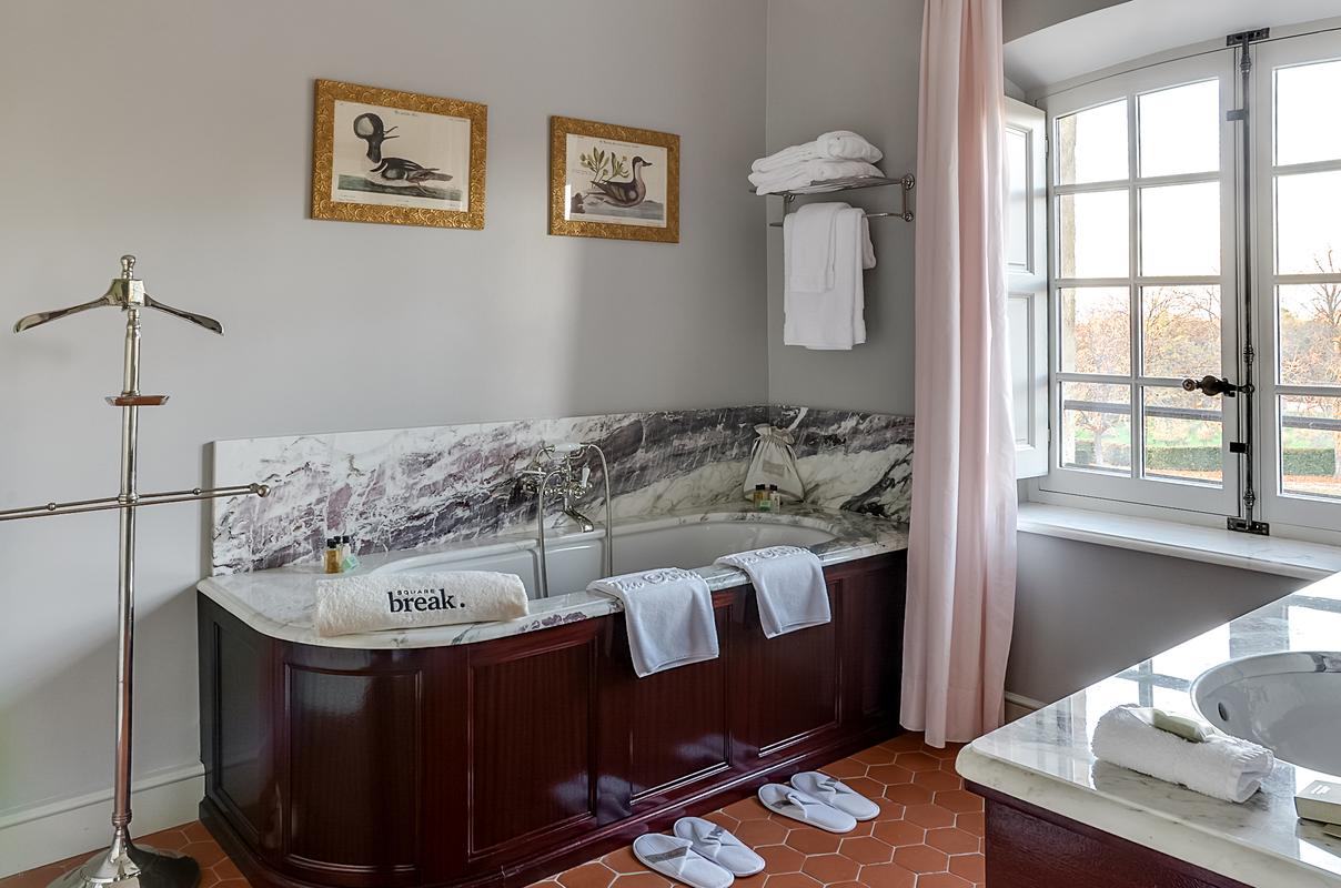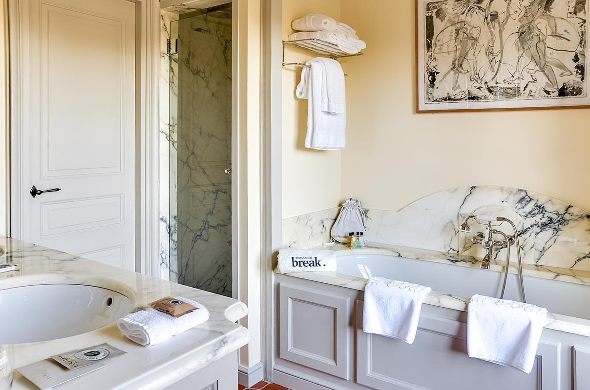 Le château lui-même a été magnifiquement restauré et rénové pour accueillir ses hôtes avec le meilleur du luxe et du confort. Il est entouré d’un parc paysager de 22 hectares, un lieu magique où chacun est libre de faire ce qu’il veut de son temps libre, qu’il s’agisse de se détendre autour de la piscine, de faire du vélo, du tennis ou même d’apprendre les vins et l’art de la viticulture. Un hammam et un bain à remous sont également disponibles.