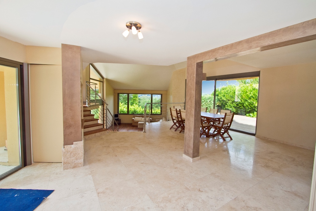 Un terrain de 5000 m² arboré qui accueille une grande piscine à débordement qui surplombe la campagne. Cette villa au calme sans vis à vis pour des vacances en famille ou entres amis.