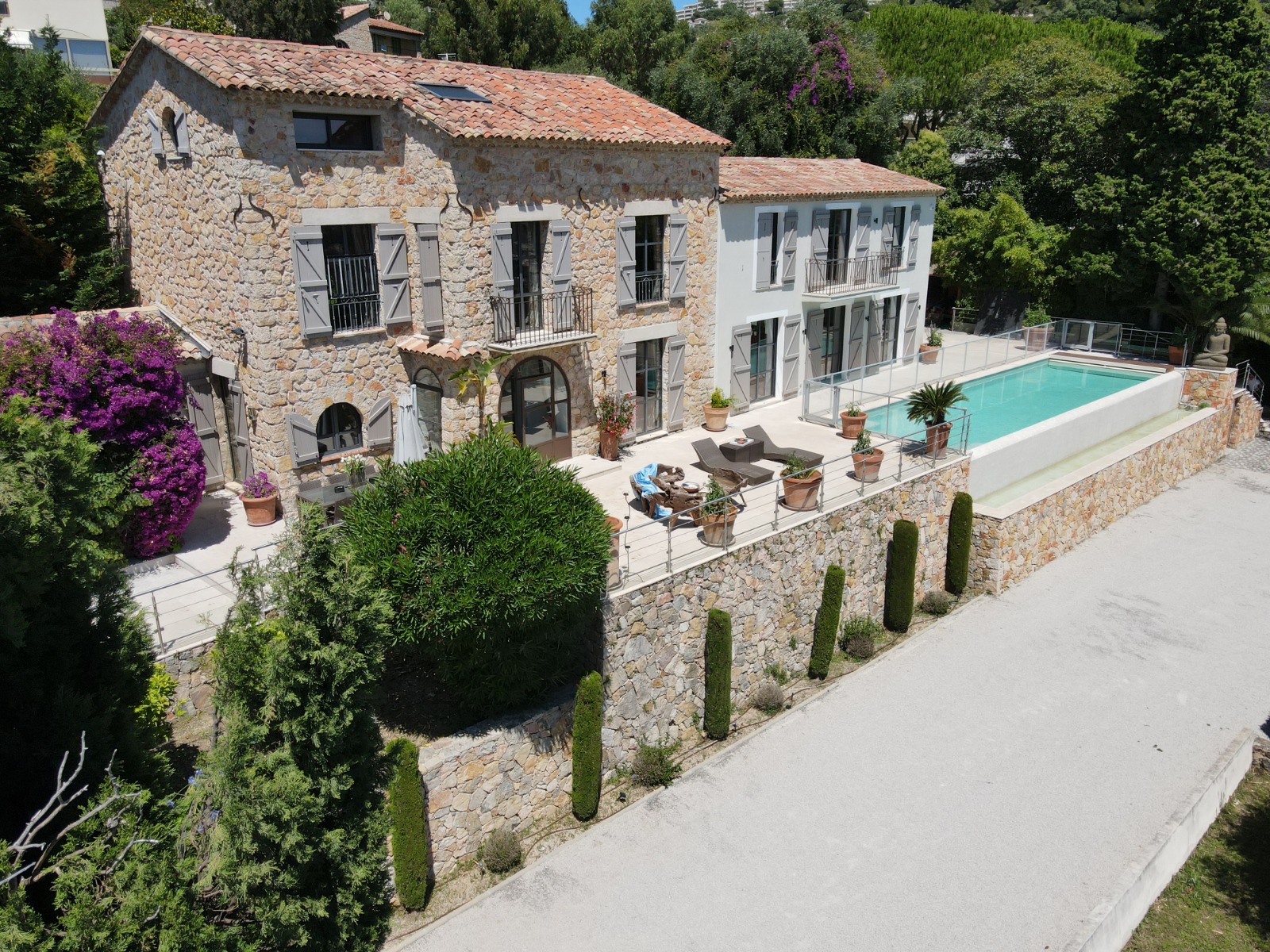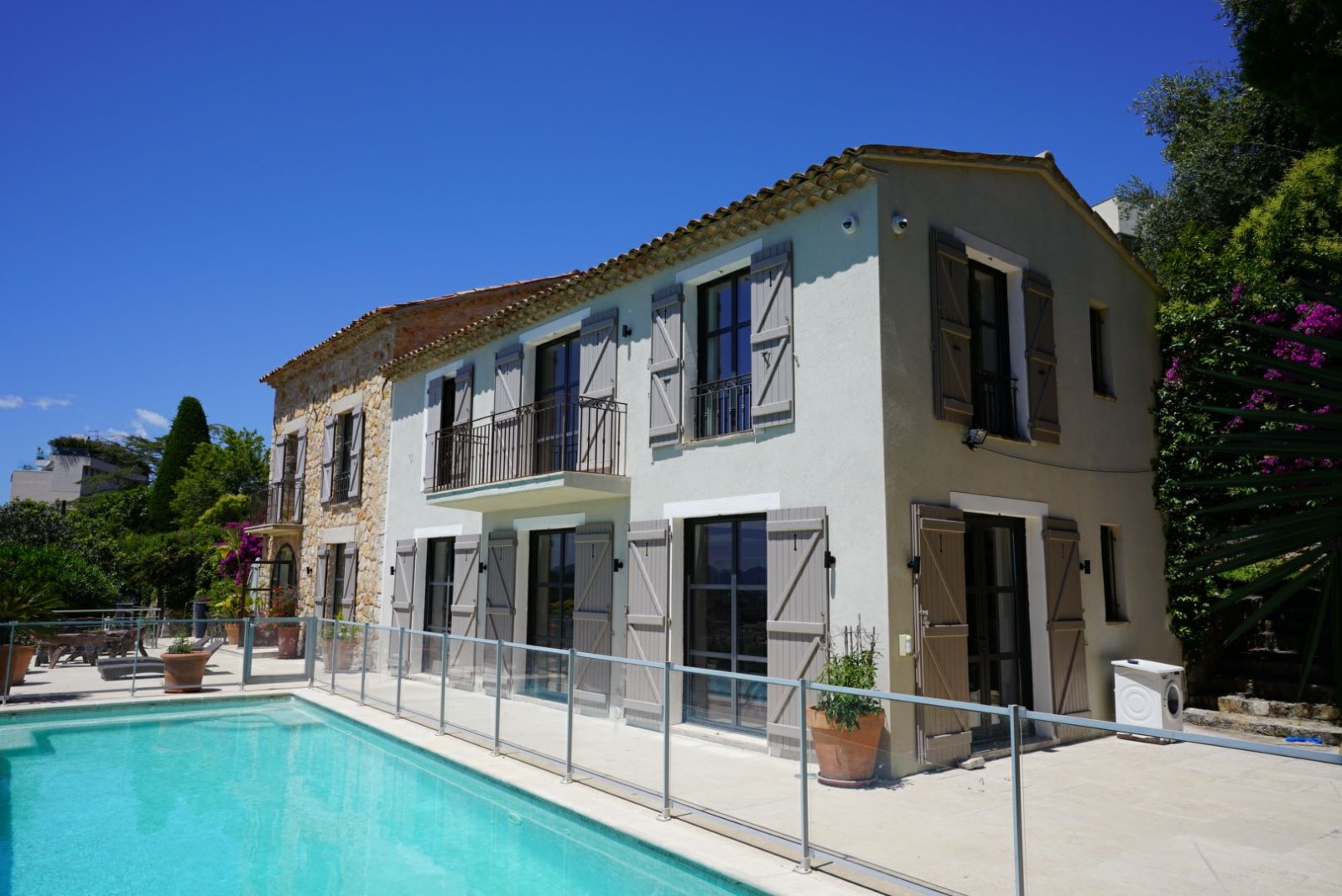Une villa de charme de 400 m² avec vue mer, c’est une ancienne bastide entièrement restaurée à la sortie de Cannes. En effet, à quelques minutes de Cannes, sur 3000 m² de jardin vous êtes au calme.