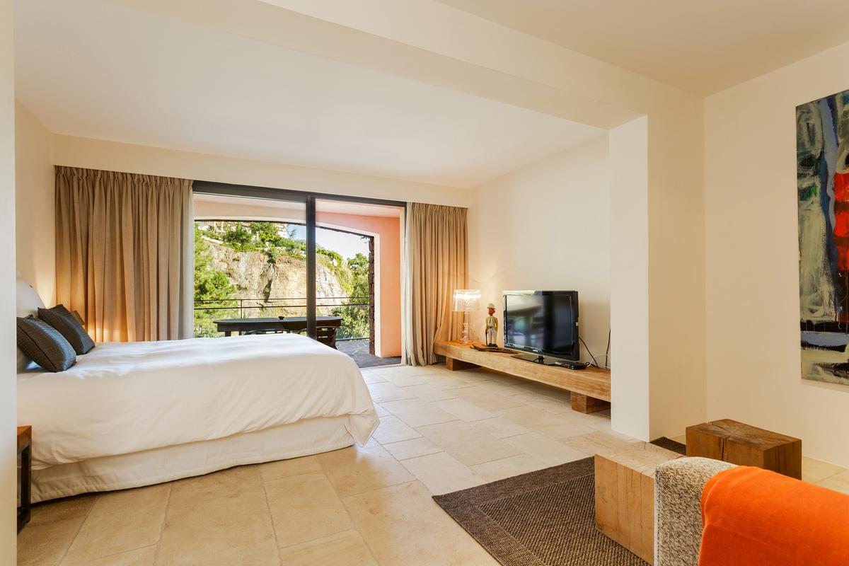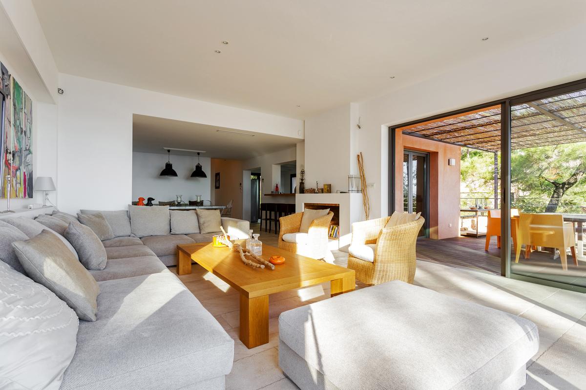 Afin que vous puissiez profiter pleinement de l’environnement de la villa, le salon, la salle à manger et la cuisine s’ouvrent largement sur la terrasse de 160m2 avec une piscine à débordement et un jacuzzi donnant sur la mer.
