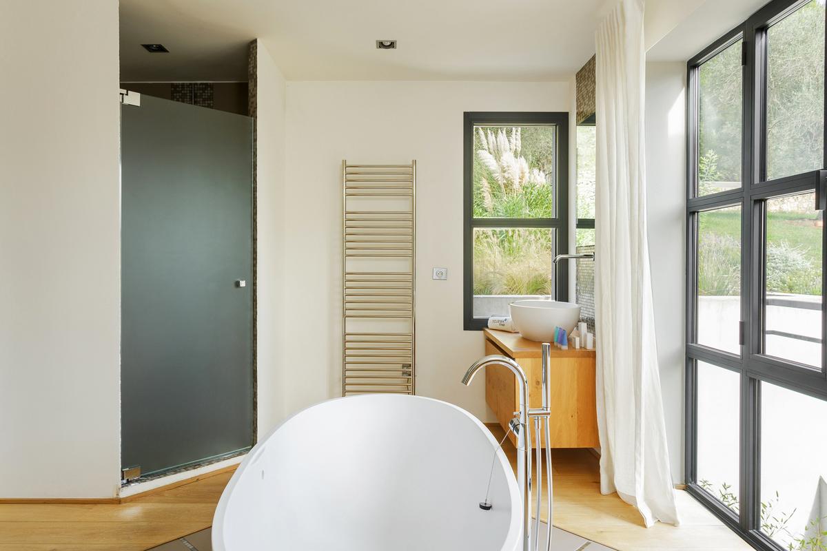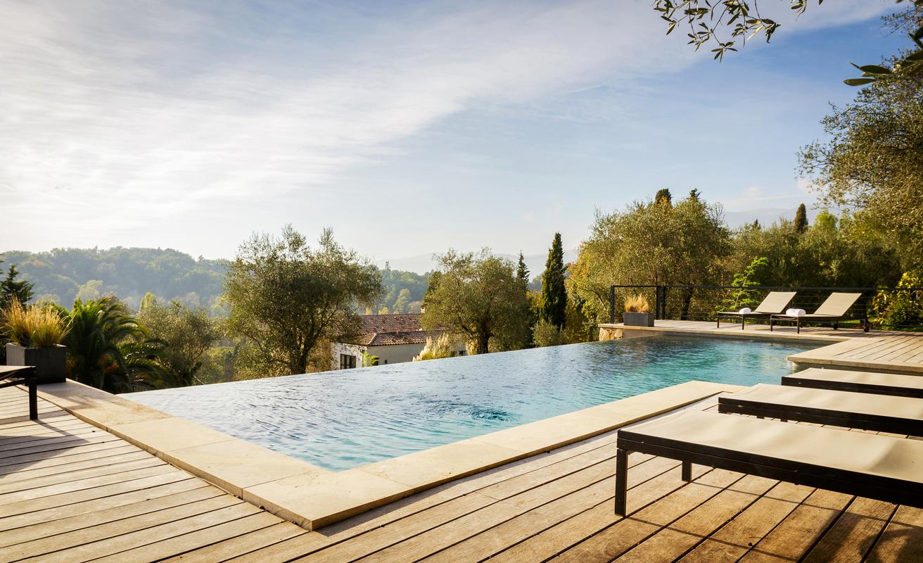 La piscine à débordement chauffée et salée, au-dessus de la maison, est accessible par une allée bordée de lavande. Construit sur un terrain en terrasses planté d’oliviers centenaires, c’est un lieu privilégié, comme un lac en pleine nature. Le pool-house avec douche et cuisine équipée vous permettra de passer de nombreuses heures de détente autour de la piscine.