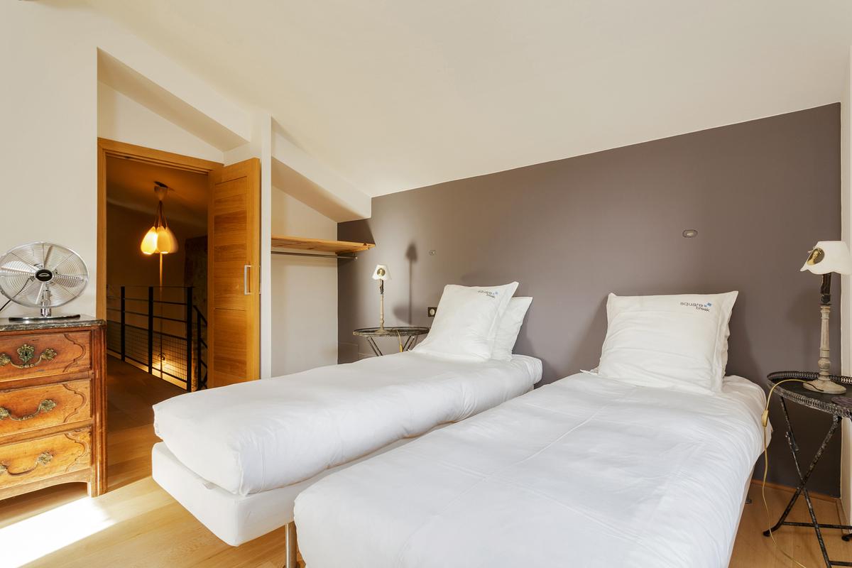 L’escalier de l’entrée mène au premier étage, avec deux chambres doubles spacieuses avec salle de douche attenante (un lit de 140 cm et un lit de 160 cm).