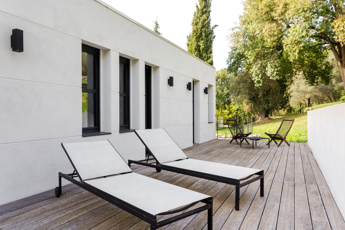 Cette étonnante villa avec piscine chauffée, dans une belle propriété en terrasses, à flanc de colline. On a une vue magnifique sur le village de Plascassier et les collines environnantes.