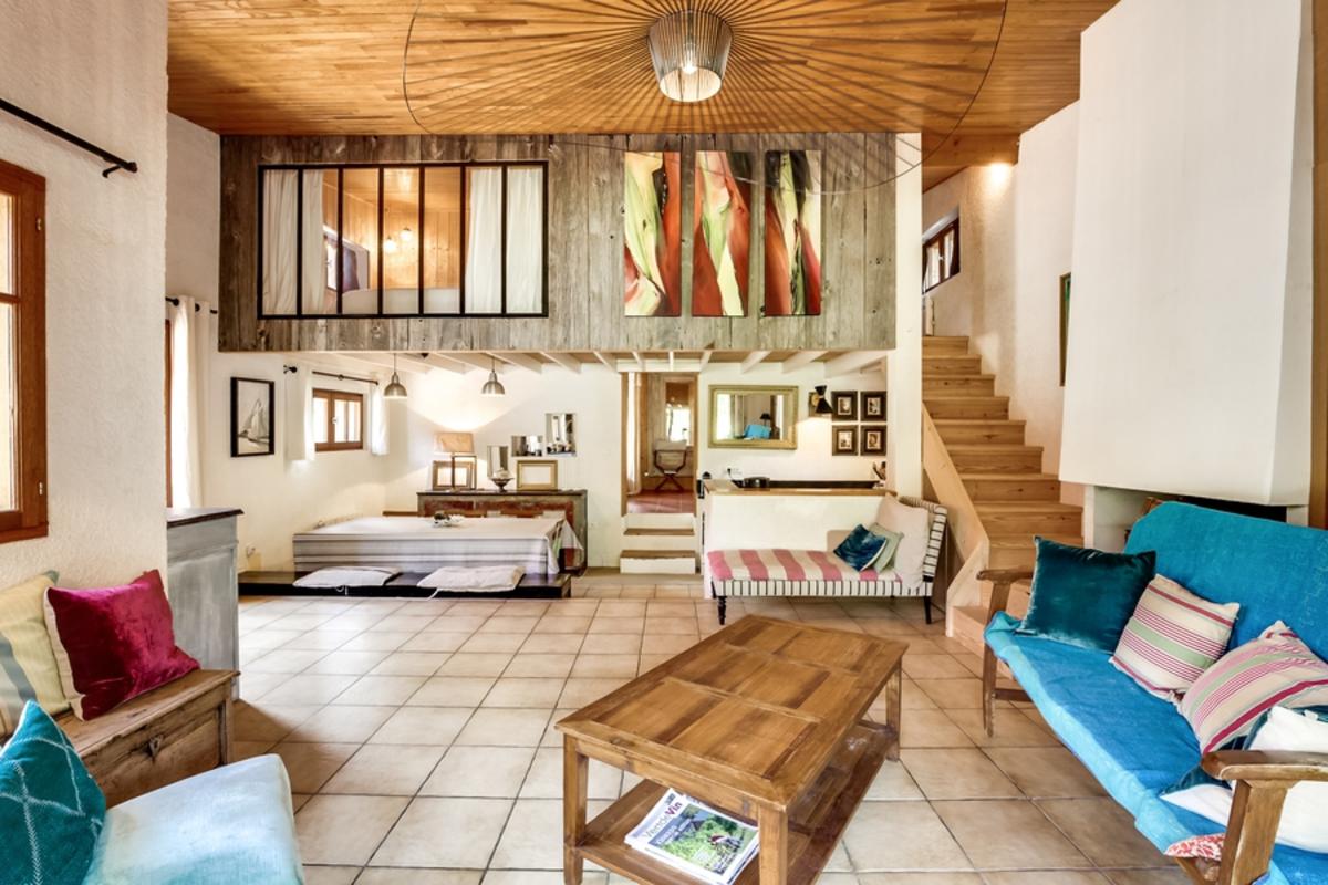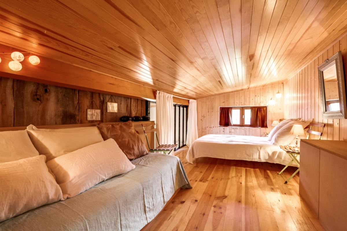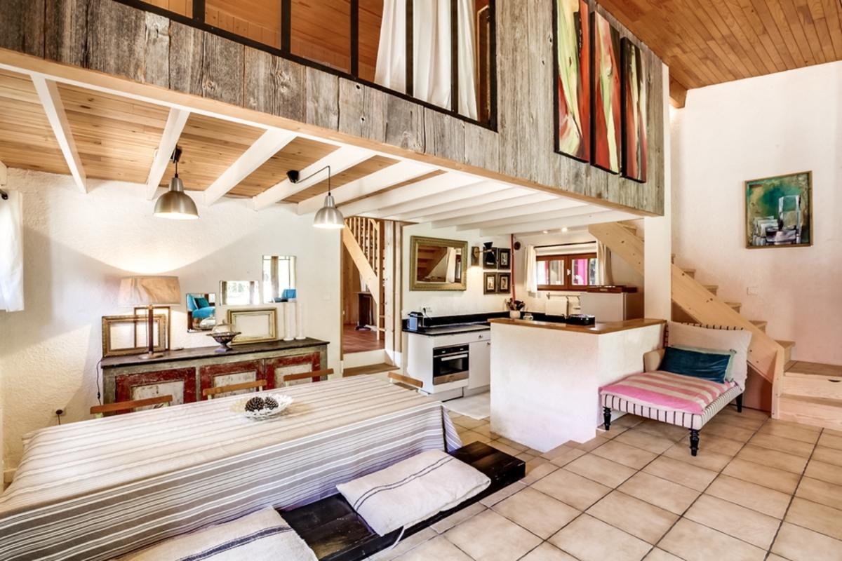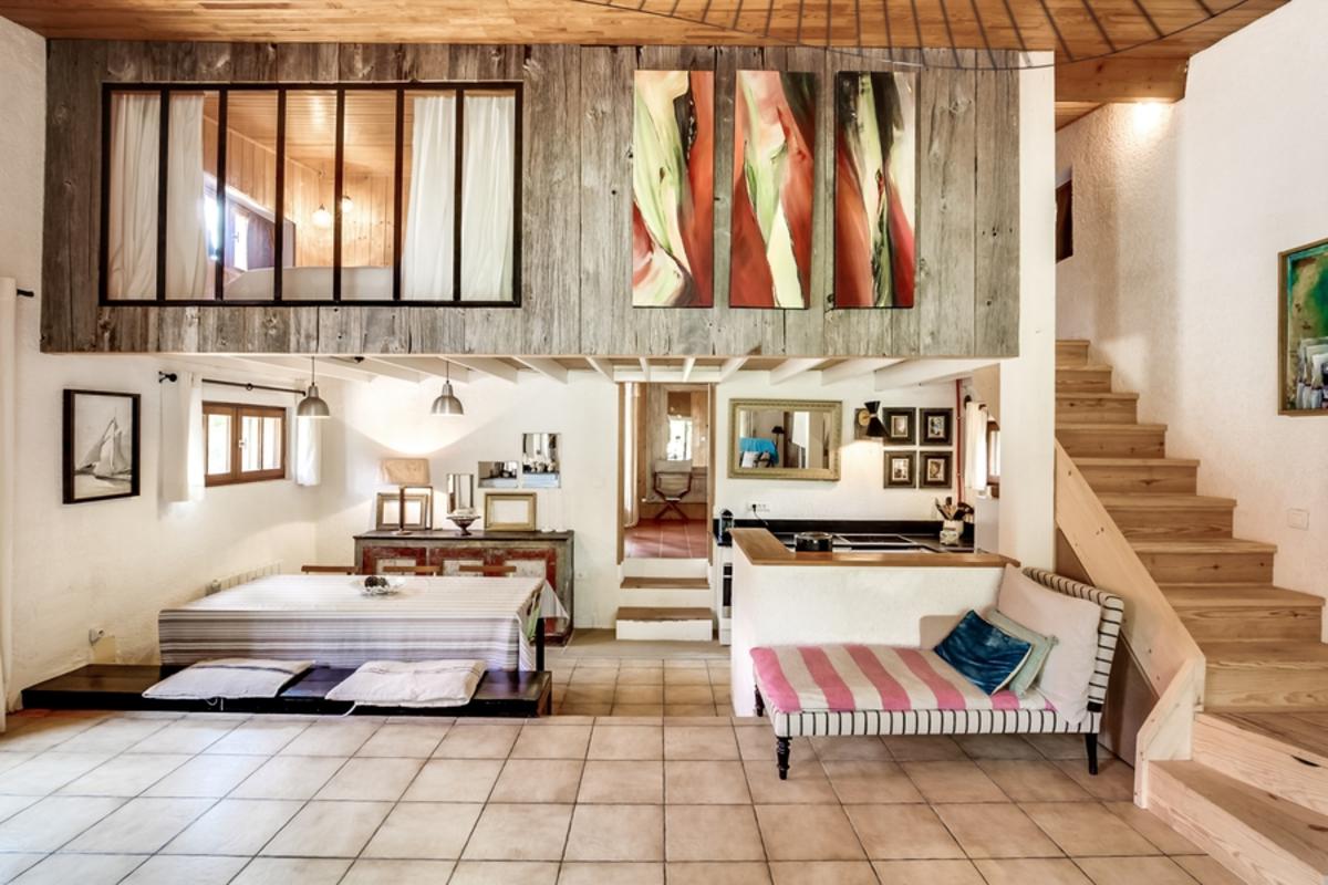 – chambre de maître en mezzanine, donnant sur le séjour grâce aux grandes baies vitrées