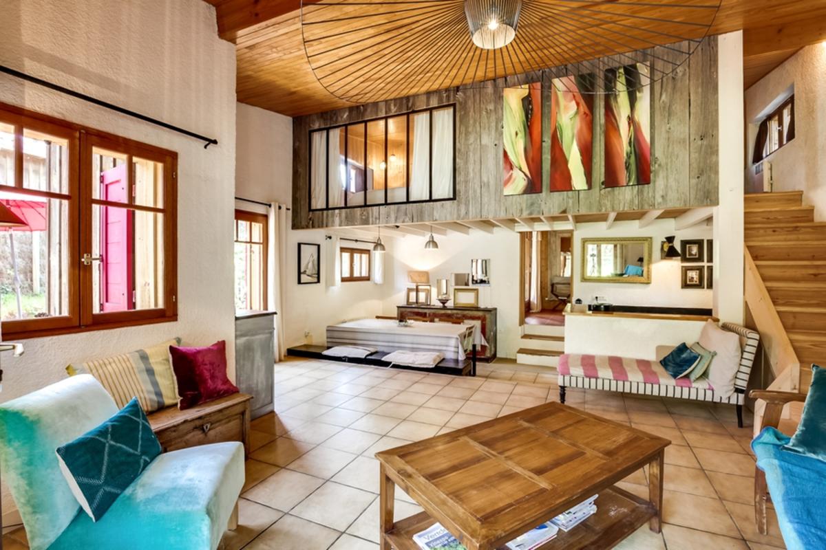 Epitomisant l'esprit de nature du Cap Ferret, cette cabane en bois est comme un loft haut de gamme. Très bien situé au nord du Cap, à mi-chemin entre la Baie et l’océan, à 5 minutes à pied de la plage, il a tout le charme et le confort de belles vacances en famille. Construite sur un jardin de 750m2, la maison dispose de deux belles terrasses pour profiter du soleil quelle que soit l’heure de la journée. La grande chambre en mezzanine, la disposition en deux niveaux et la décoration à la fois simple et accueillante confèrent à la maison une atmosphère particulièrement conviviale