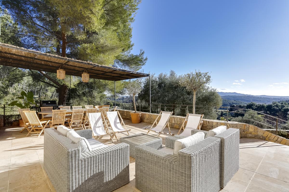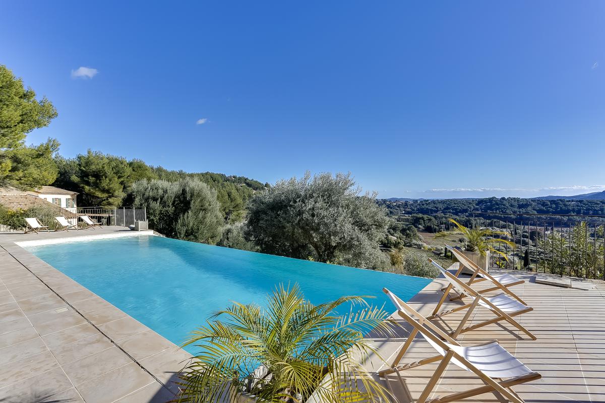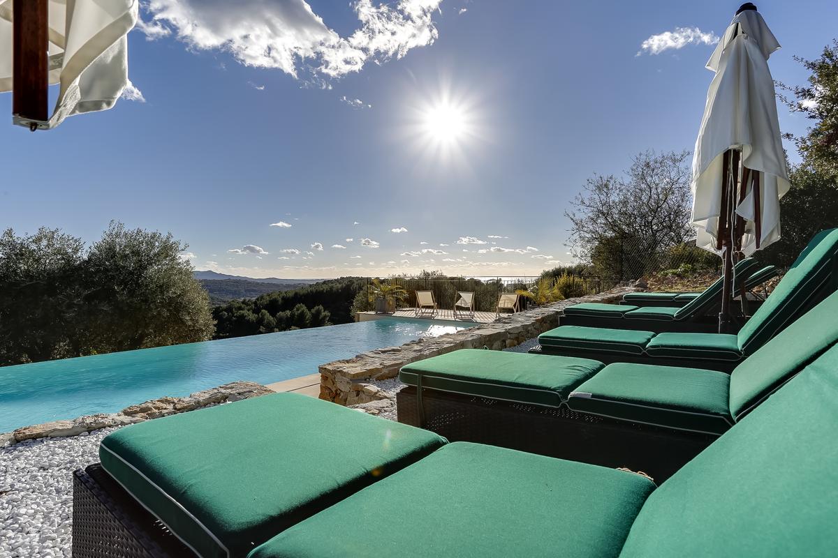 Cette villa récente, construite dans l’esprit provençal, est cachée en haut de la colline, cachée au milieu des pins, des oliviers et des lauriers roses. Puis, cette villa luxueuse magnifiquement intégrée dans un terrain de 6000 m2 de pentes en terrasses bordées d’arbres. En fait, une vaste étendue de paysages intacts, verts et vallonnés se déploie devant vous. Puis, avec une vue qui s’étend jusqu’à la mer Méditerranée. Enfin, la superbe piscine à débordement chauffée de 15 mètres offre un panorama tout aussi spectaculaire. Très privé, mais pas isolé, car le voisin le plus proche est à 300 mètres.
