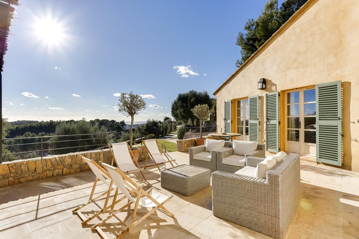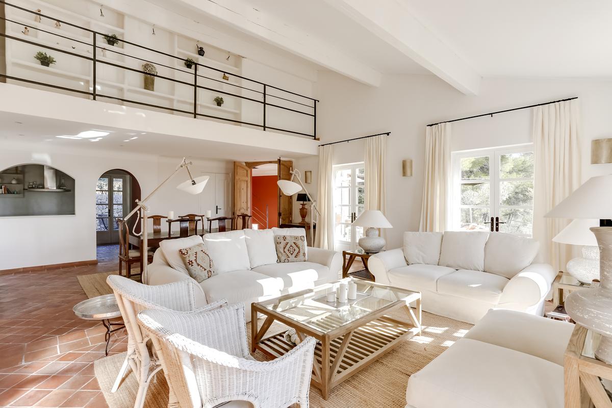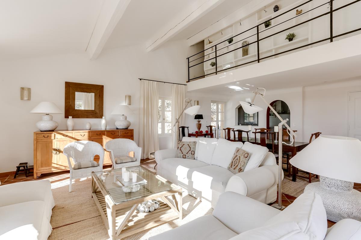 L’intérieur est décoré avec goût dans un style champêtre chic avec un aspect et un toucher doux et doux. Les tons blanc et ocre sont rehaussés par des touches de couleurs provençales. La villa est bien chauffée en hiver et fraîche en été (climatisation au sol), offrant un haut niveau de confort en toutes saisons. En effet, aménagée sur deux niveaux et très ouvert sur l’extérieur. La villa dispose d’une spacieuse terrasse meublée avec une pergola ombragée pour les repas en plein air par beau temps.