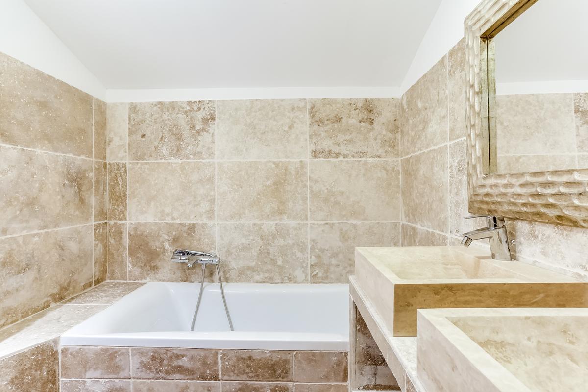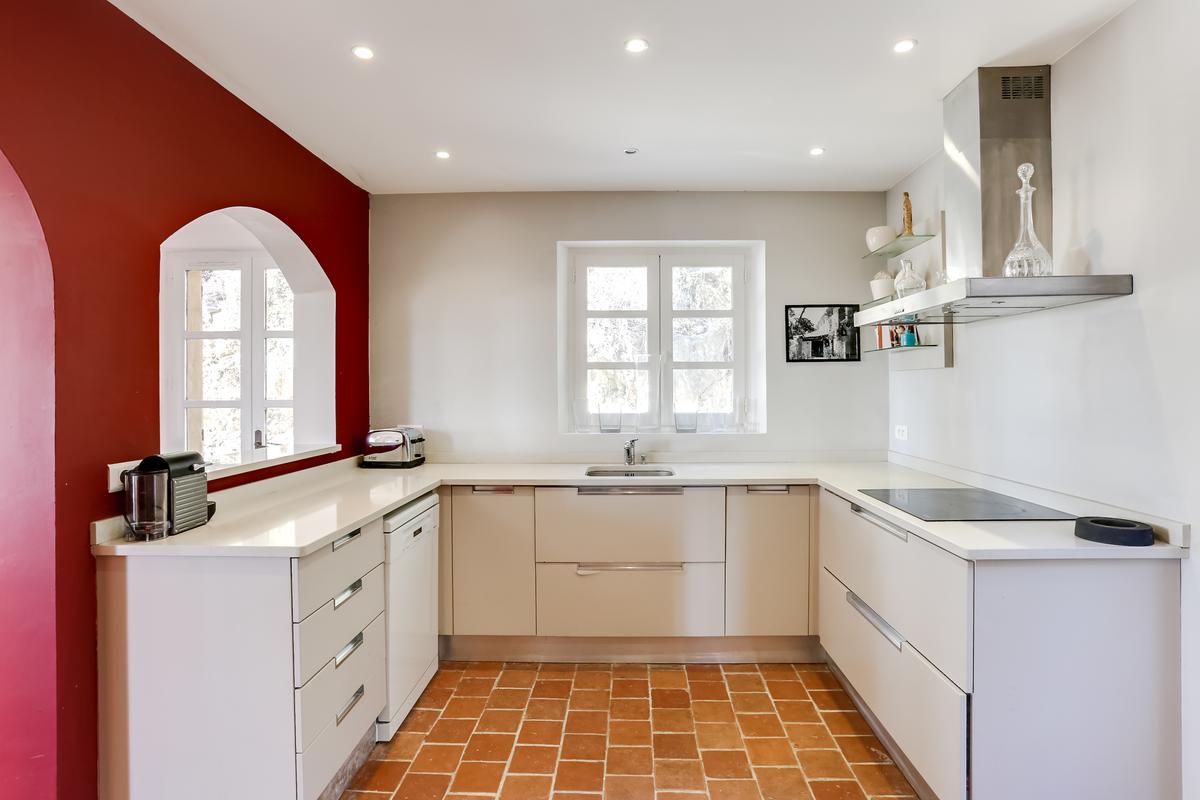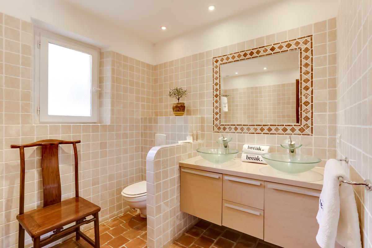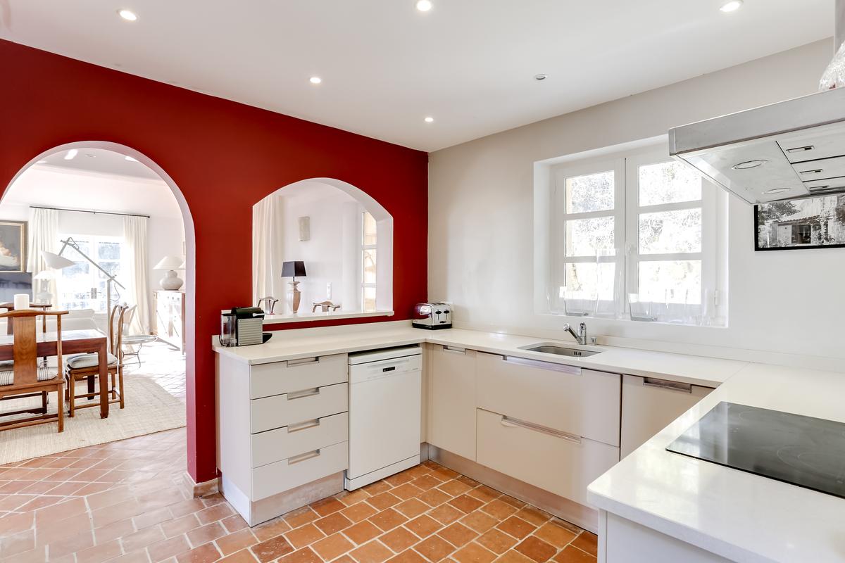 L’intérieur est décoré avec goût dans un style champêtre chic avec un aspect et un toucher doux et doux. Les tons blanc et ocre sont rehaussés par des touches de couleurs provençales. La villa est bien chauffée en hiver et fraîche en été (climatisation au sol), offrant un haut niveau de confort en toutes saisons. En effet, aménagée sur deux niveaux et très ouvert sur l’extérieur. La villa dispose d’une spacieuse terrasse meublée avec une pergola ombragée pour les repas en plein air par beau temps.