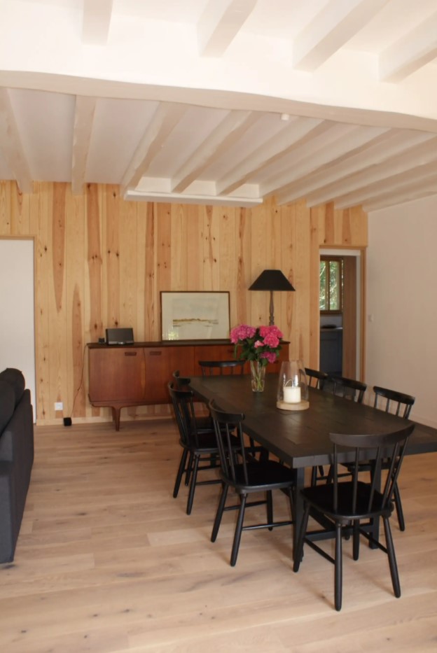 Les propriétaires ont su garder une âme de pêcheur, en jouant avec les matériaux naturels. En effet, le contraste du lambris clair et de la charpente sombre nous font vivre en vacances dans une villa comme on voit sur les cartes postales.
