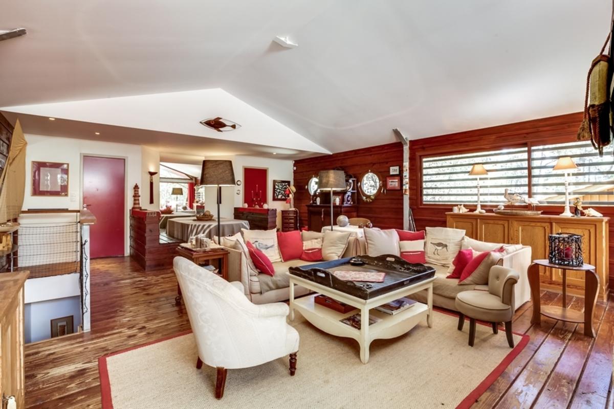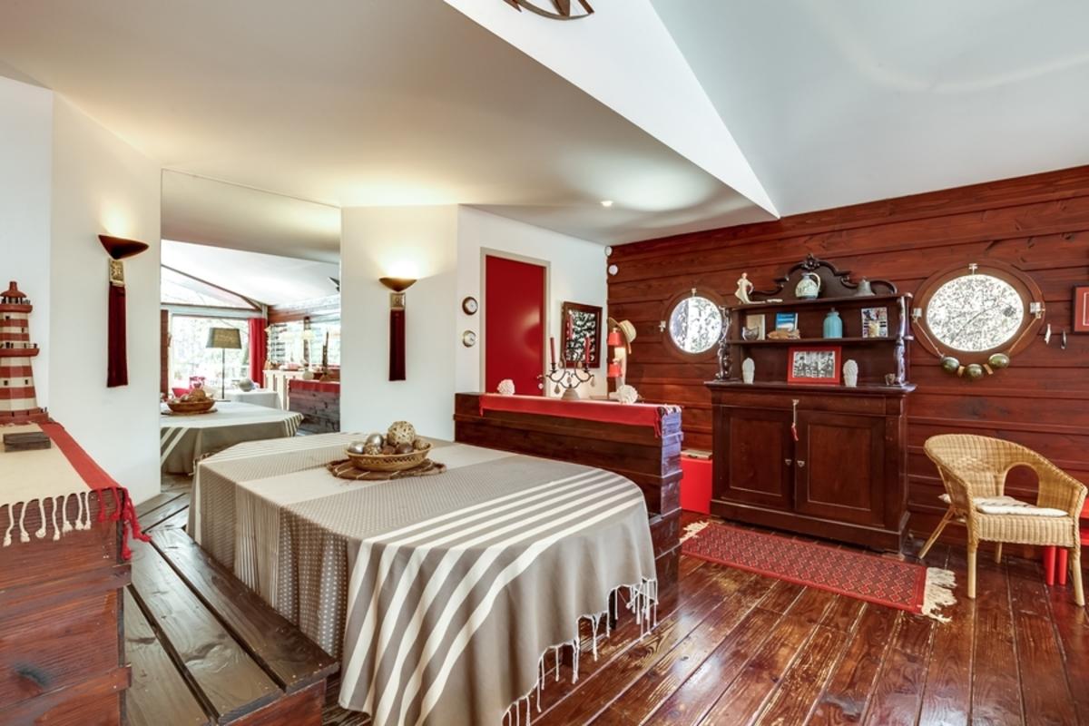 – superbe salon en boiseries, décor marin, prolongé en salle à manger