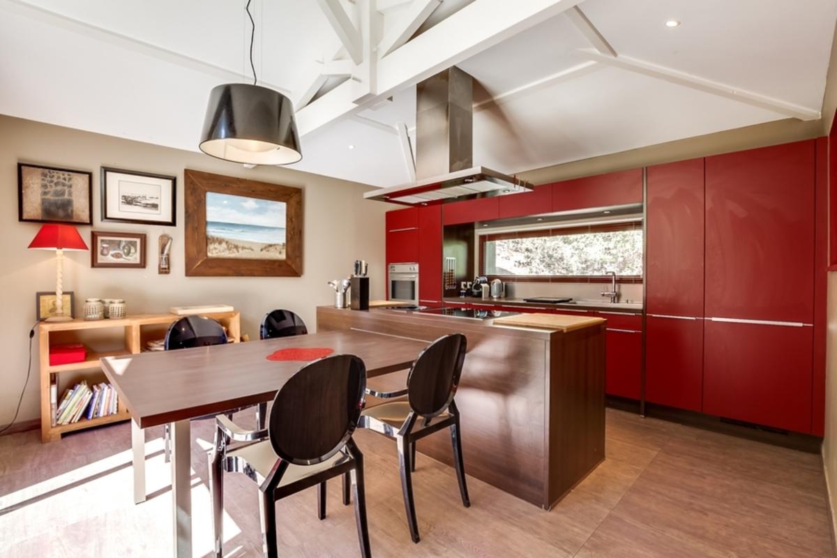 – cuisine bien équipée avec îlot central et table pour les petits déjeuners