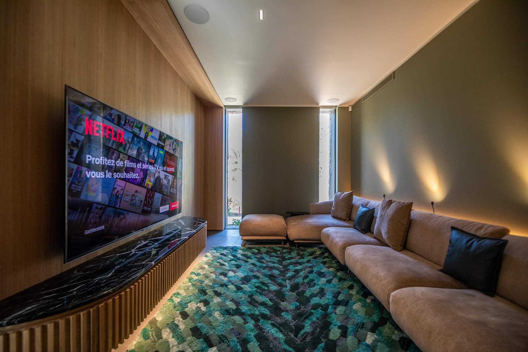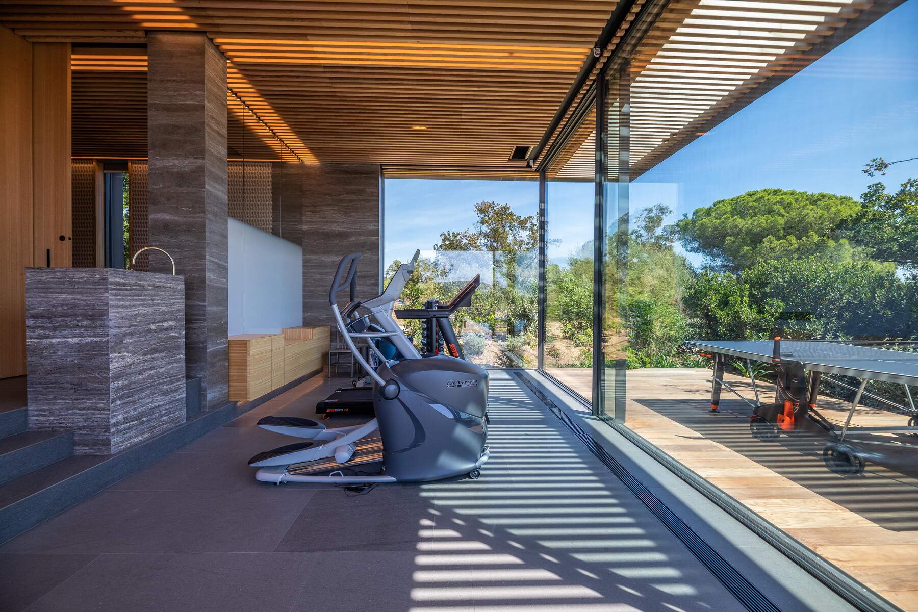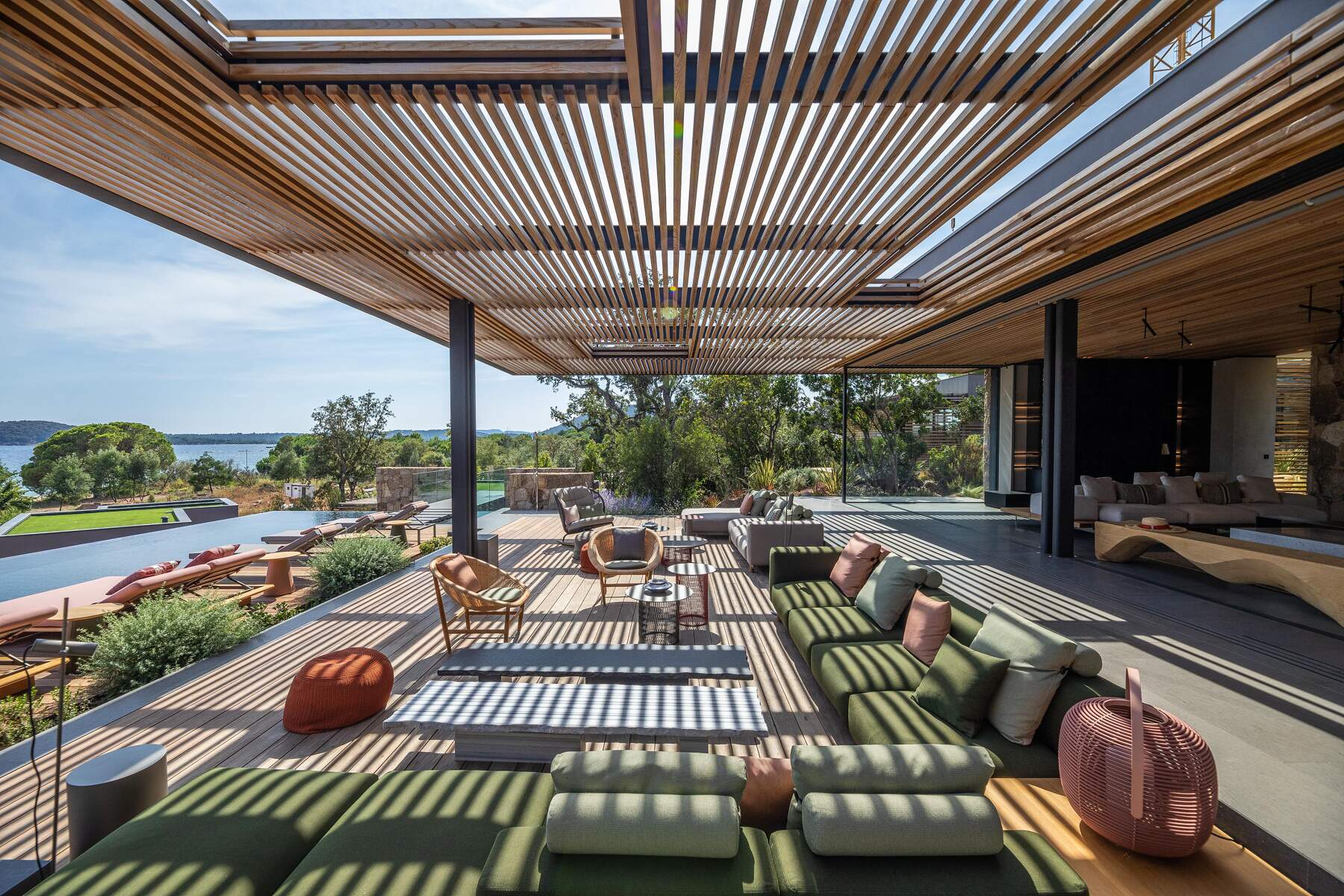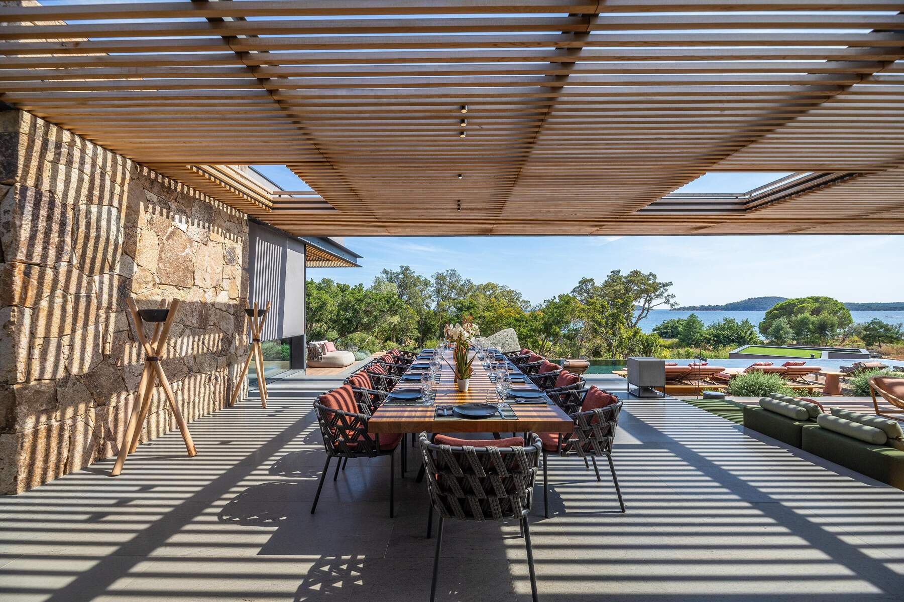 La décoration est chaleureuse et l’architecte d’intérieur a donner une vraie âme à cet endroit particulier. En fait, le mélange choisi de divers matériaux nobles en toute modernité et confort nous invite à la contemplation. Des lignes épurées et des prestations hauts de gamme sont un vrai plaisir pour séjourner dans cette villa luxueuse.