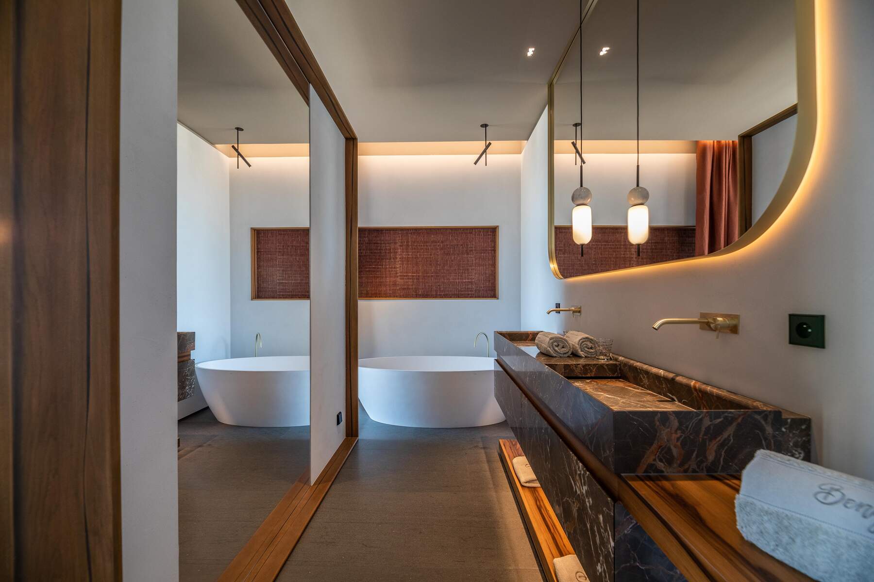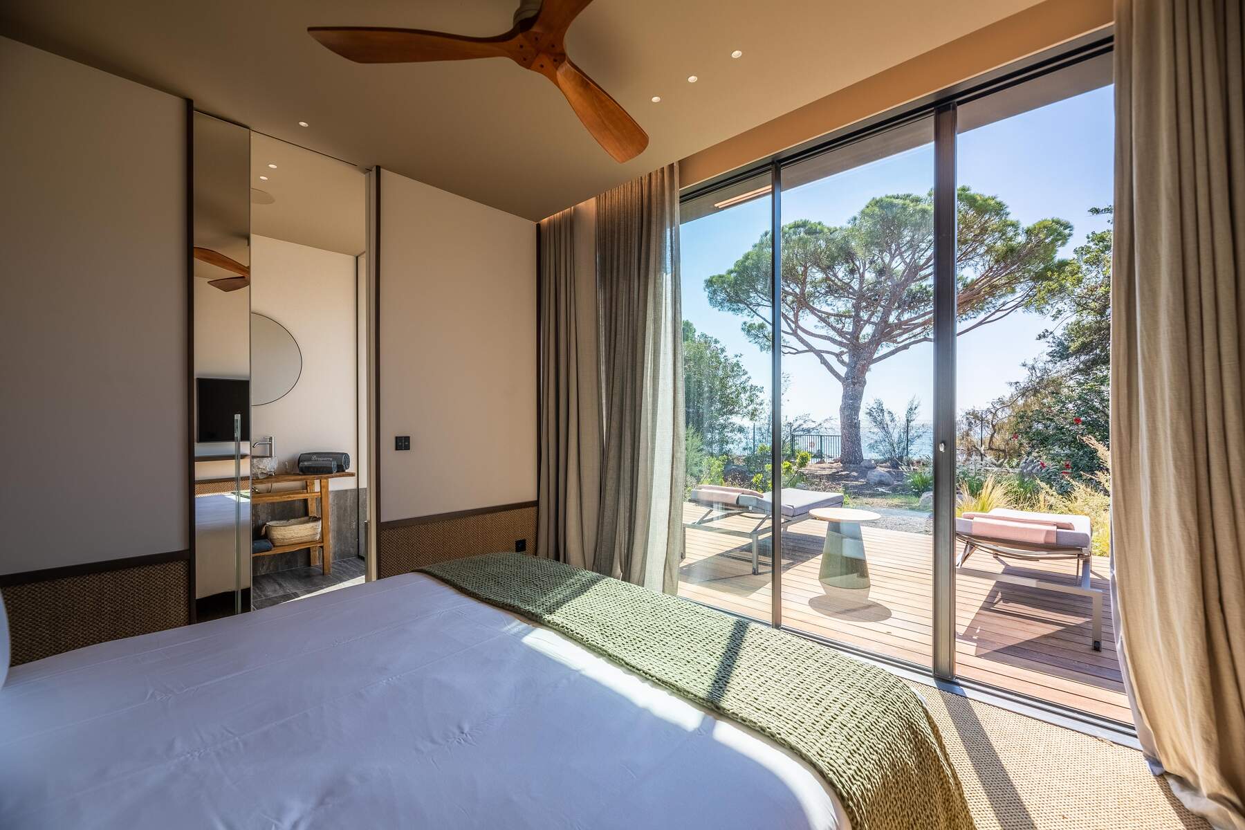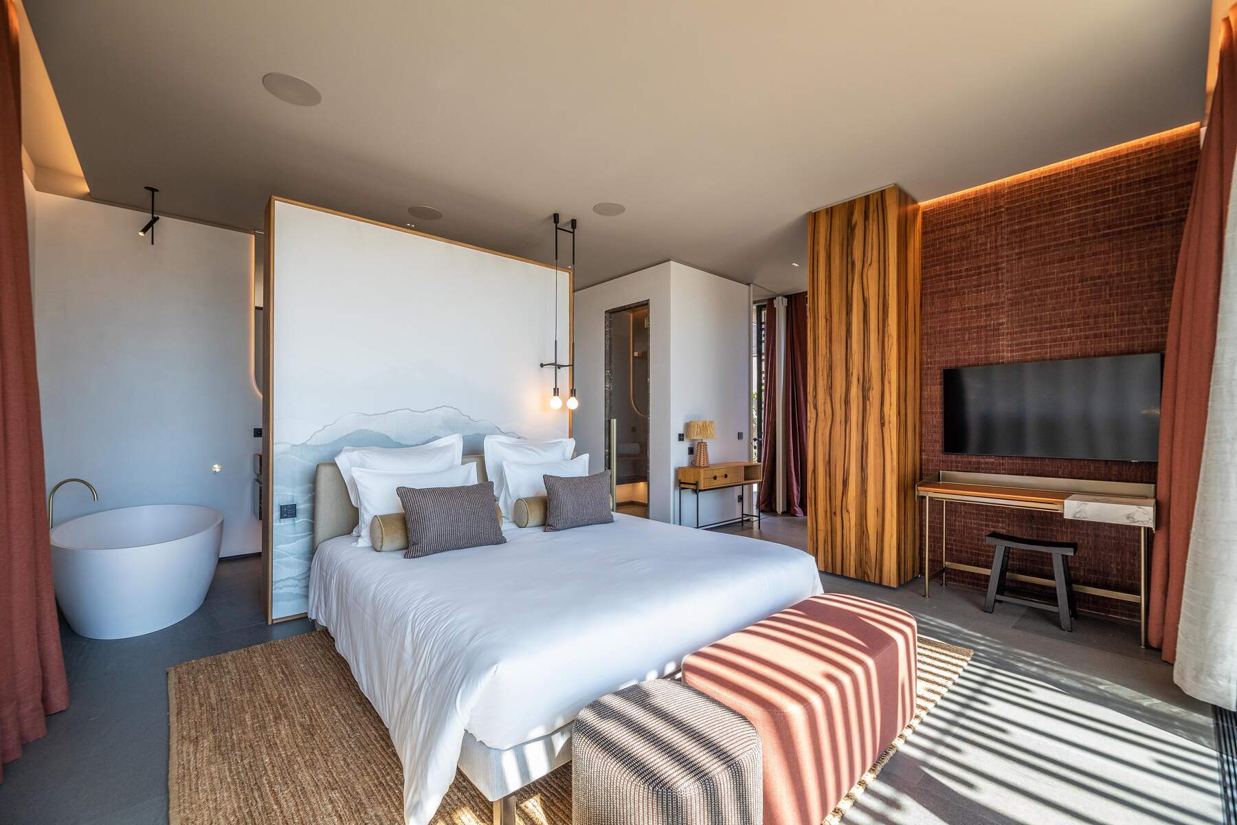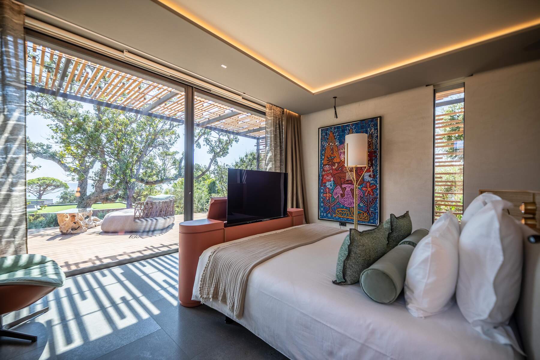 La décoration est chaleureuse et l’architecte d’intérieur a donner une vraie âme à cet endroit particulier. En fait, le mélange choisi de divers matériaux nobles en toute modernité et confort nous invite à la contemplation. Des lignes épurées et des prestations hauts de gamme sont un vrai plaisir pour séjourner dans cette villa luxueuse.