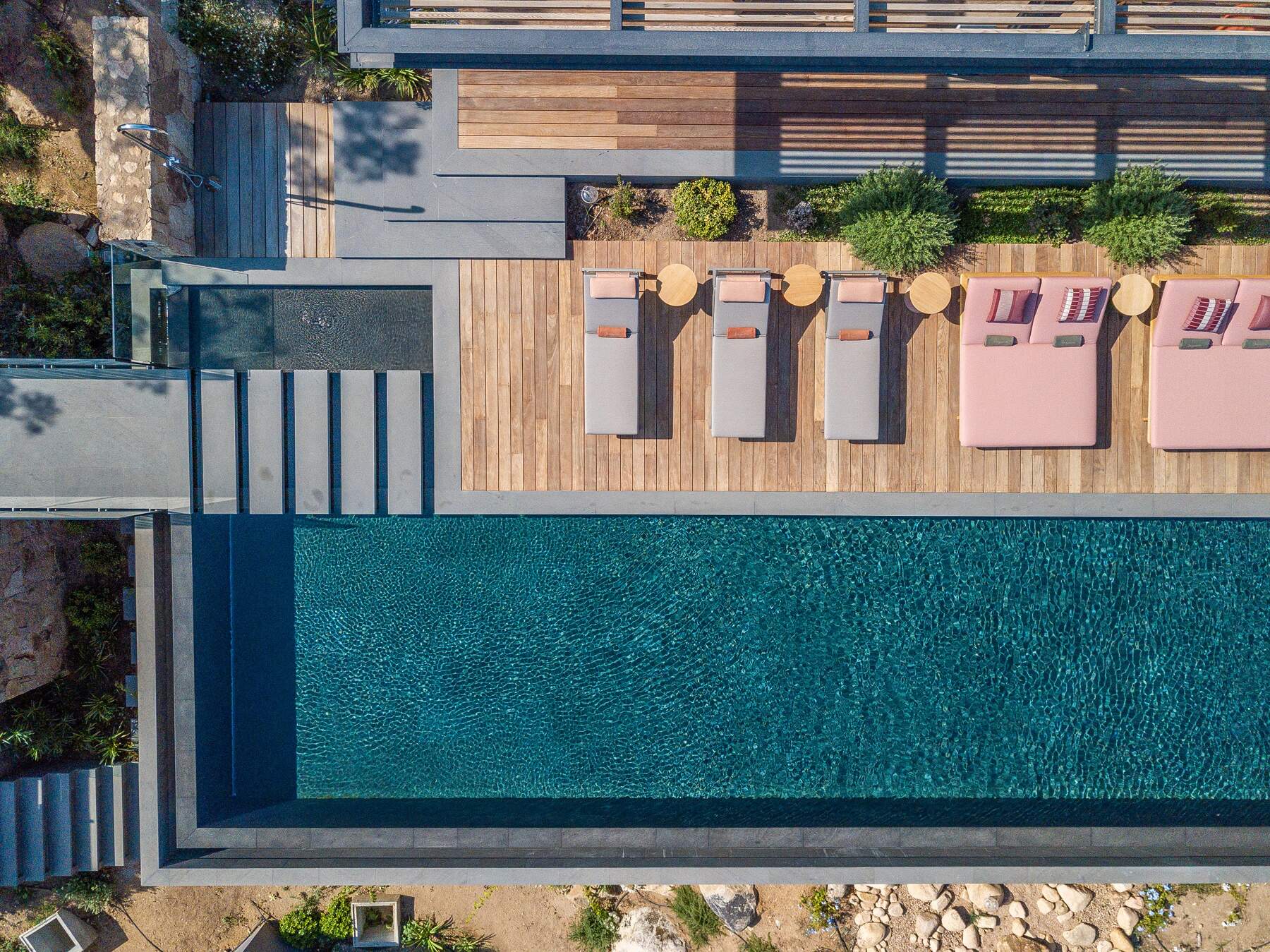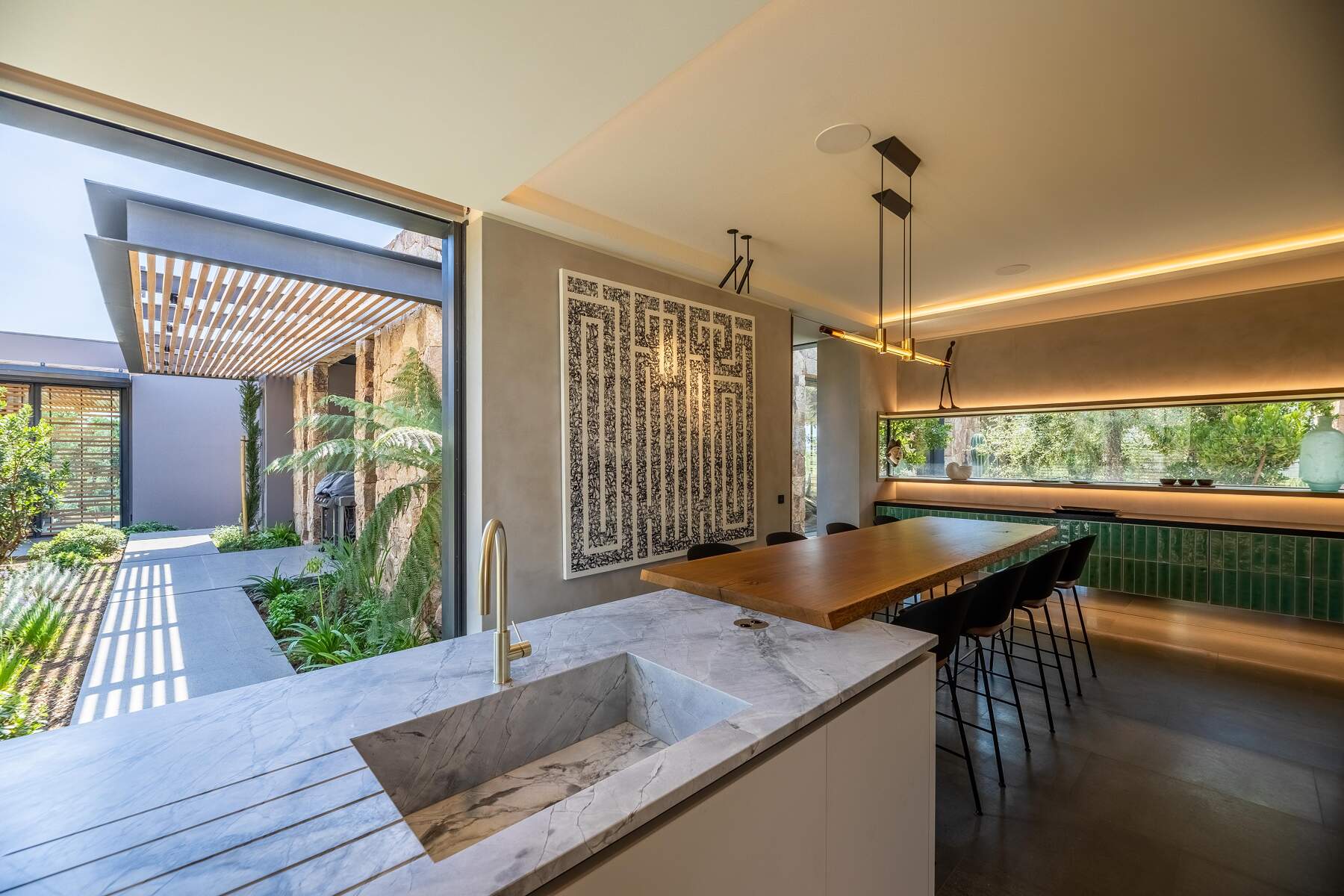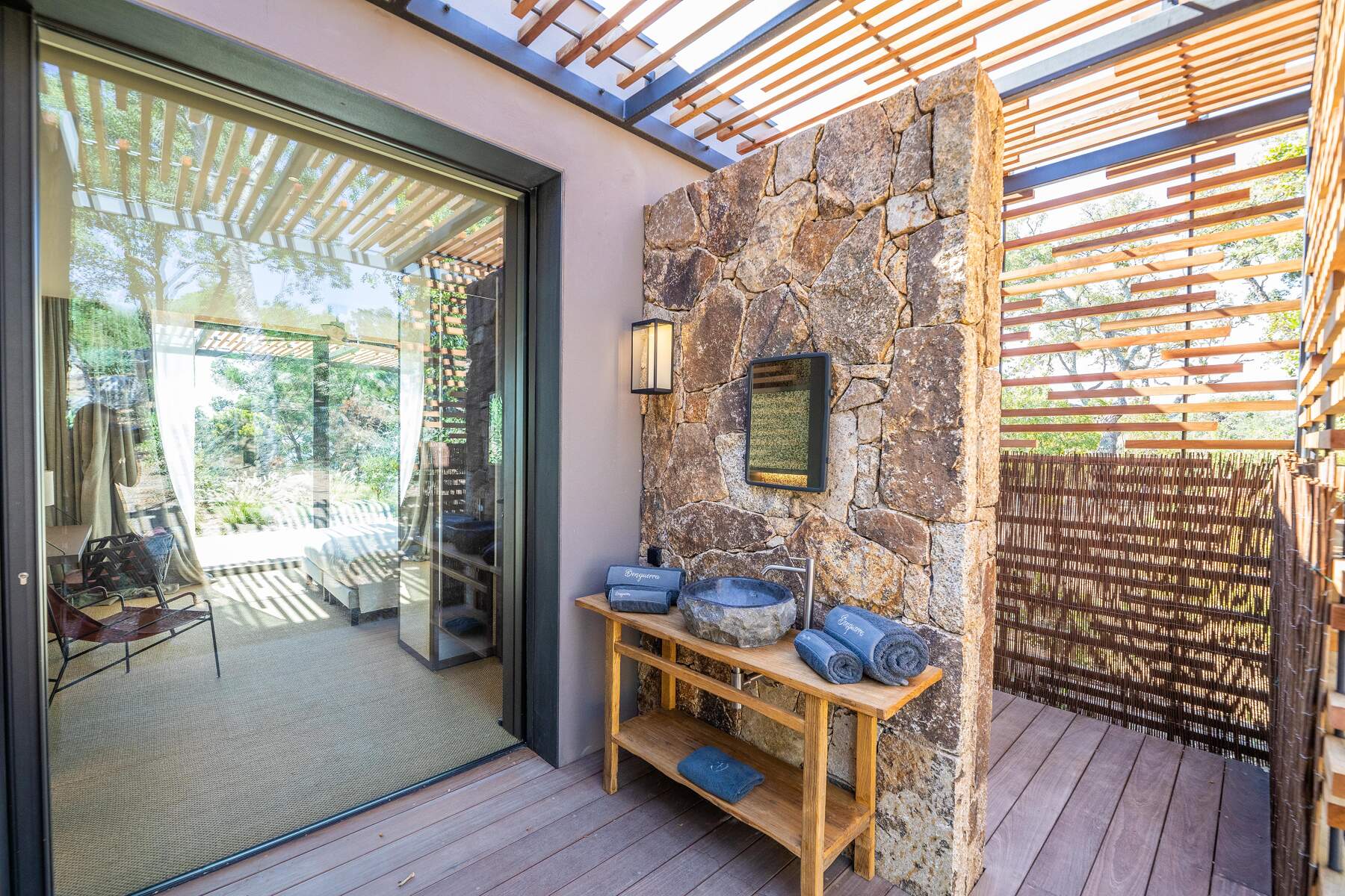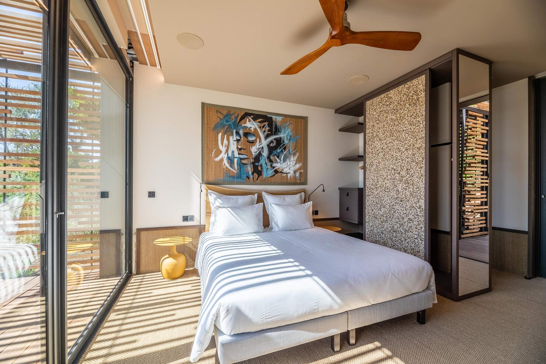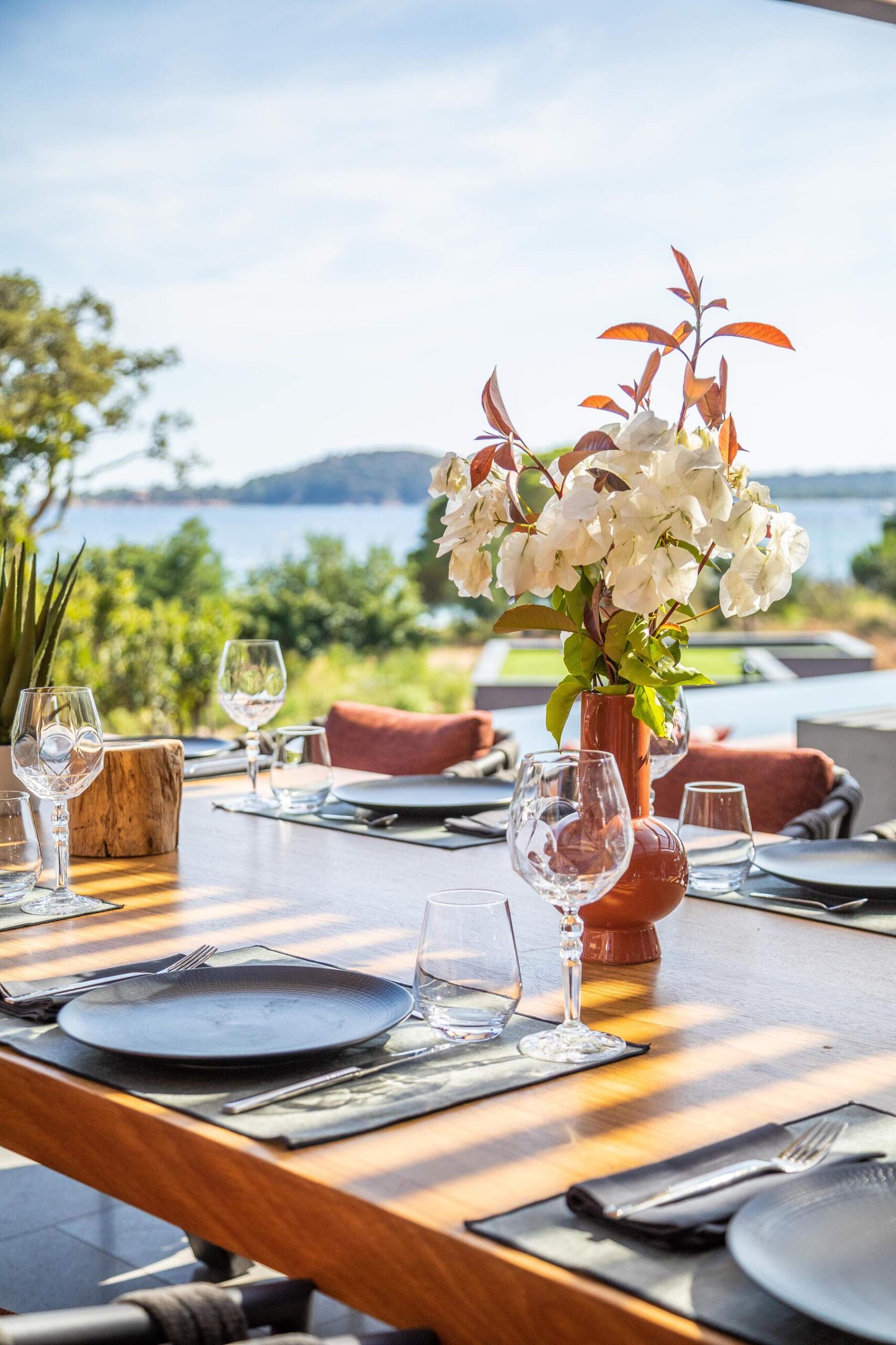 La décoration est chaleureuse et l’architecte d’intérieur a donner une vraie âme à cet endroit particulier. En fait, le mélange choisi de divers matériaux nobles en toute modernité et confort nous invite à la contemplation. Des lignes épurées et des prestations hauts de gamme sont un vrai plaisir pour séjourner dans cette villa luxueuse.