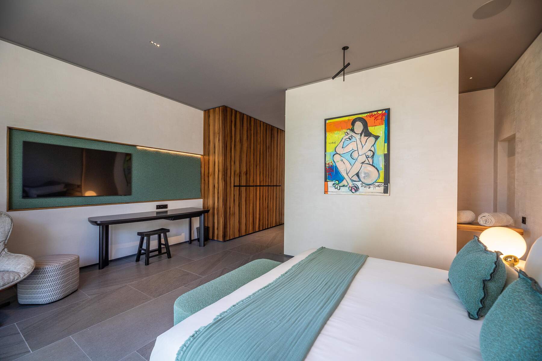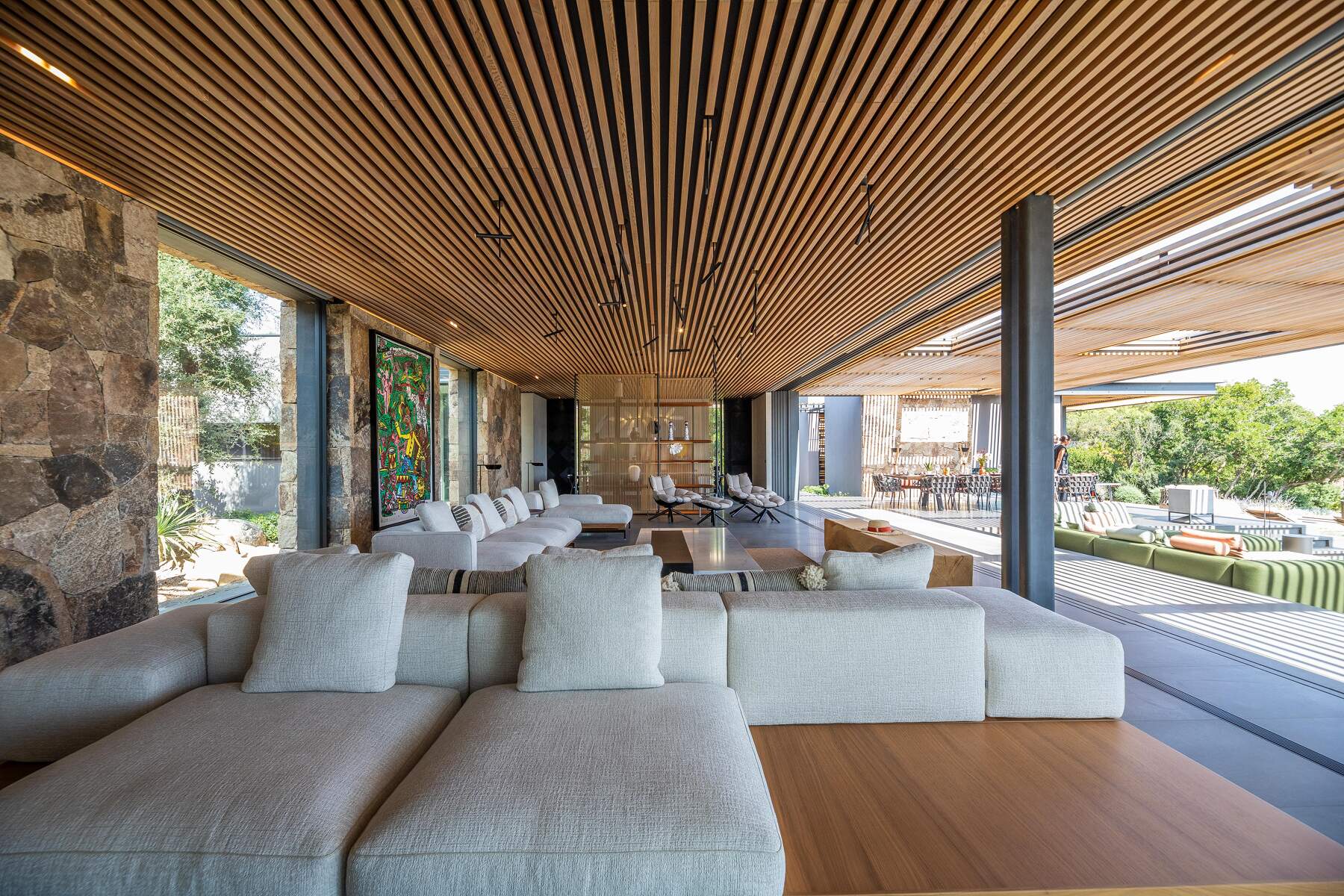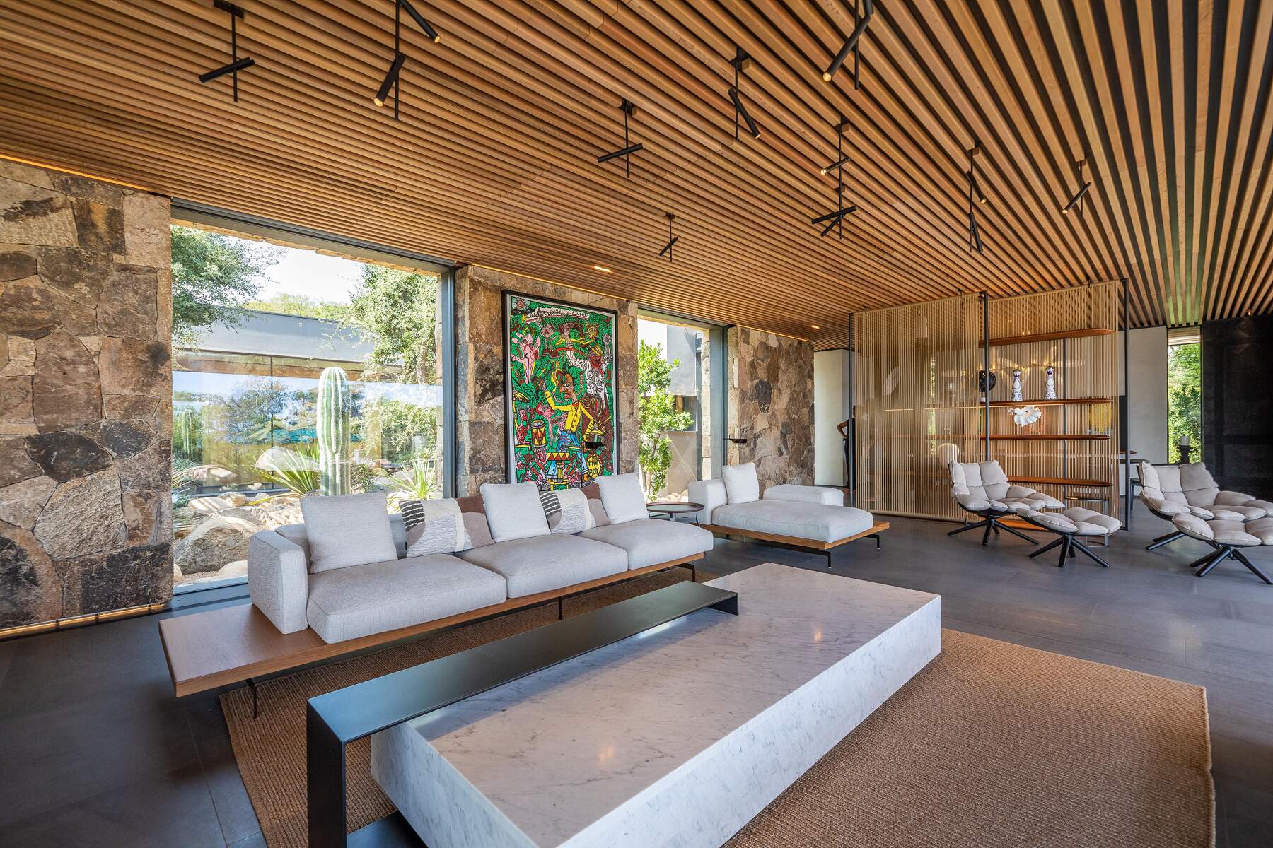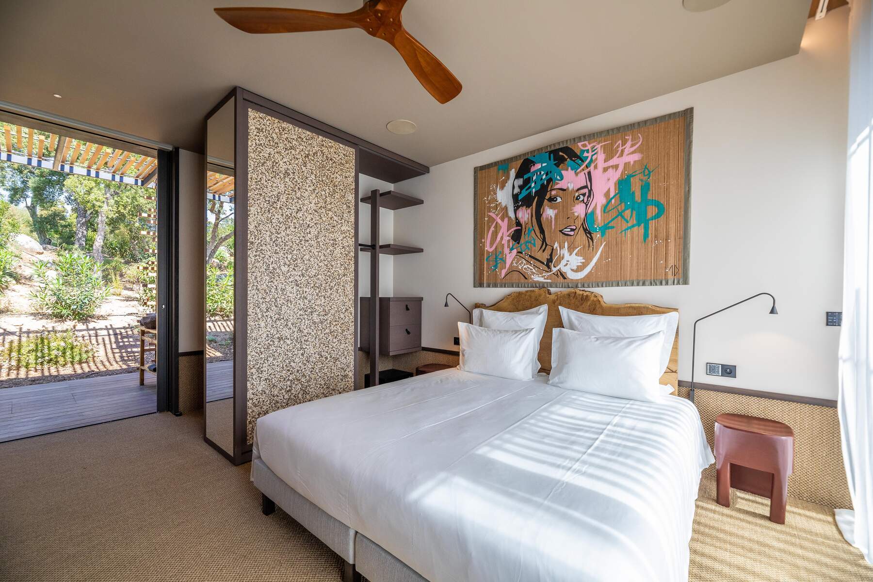 La décoration est chaleureuse et l’architecte d’intérieur a donner une vraie âme à cet endroit particulier. En fait, le mélange choisi de divers matériaux nobles en toute modernité et confort nous invite à la contemplation. Des lignes épurées et des prestations hauts de gamme sont un vrai plaisir pour séjourner dans cette villa luxueuse.