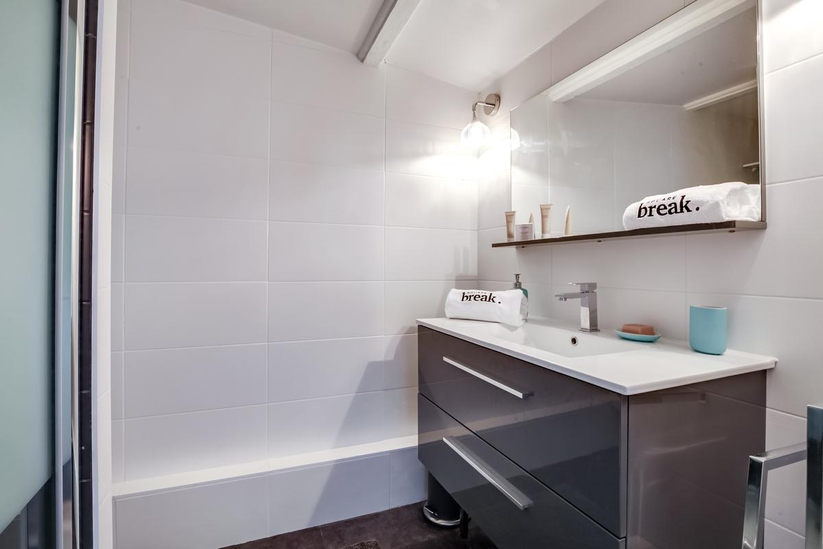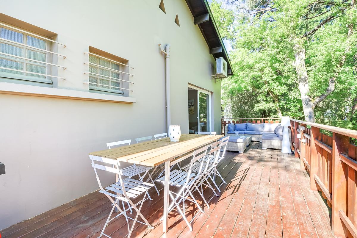 Cette belle villa dispose de deux terrasses en bois pour que vous puissiez profiter pleinement du soleil et de la forêt. La première est en face de la villa, orientée au sud, avec un salon et une salle à manger en plein air. La seconde, au nord, surplombe une magnifique clairière. Meublé d’un canapé d’angle, d’une grande table et d’un barbecue, c’est un véritable espace de vie à part entière qui s’ouvre directement sur le salon intérieur.