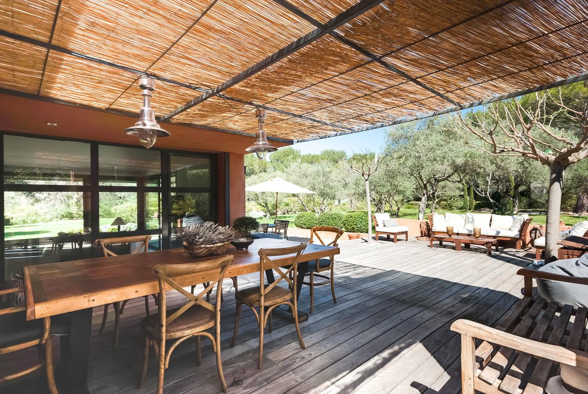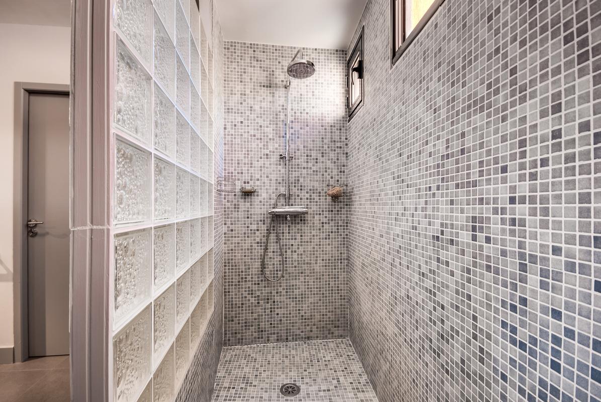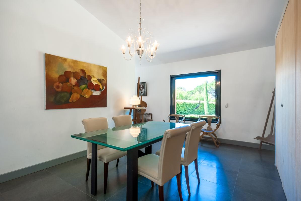 Sur les terrasses ombragées et confortablement meublées, vous pourrez profiter de repas en plein air, tandis que la grande piscine de 17x5m est un endroit idéal pour jouer ou se détendre. La villa est très bien équipée, avec un décor raffiné rehaussé de matériaux nobles et de mobilier design. Son ameublement moderne et sa belle taille le rendent particulièrement confortable.