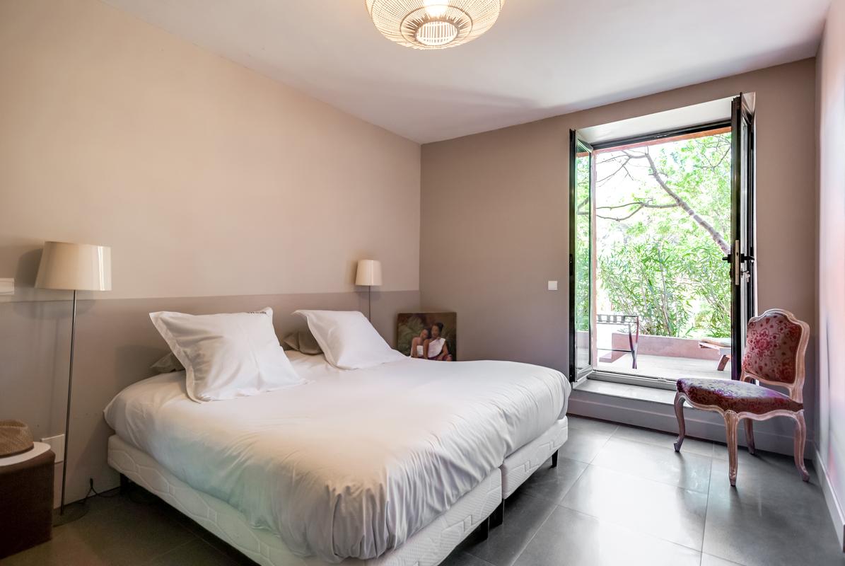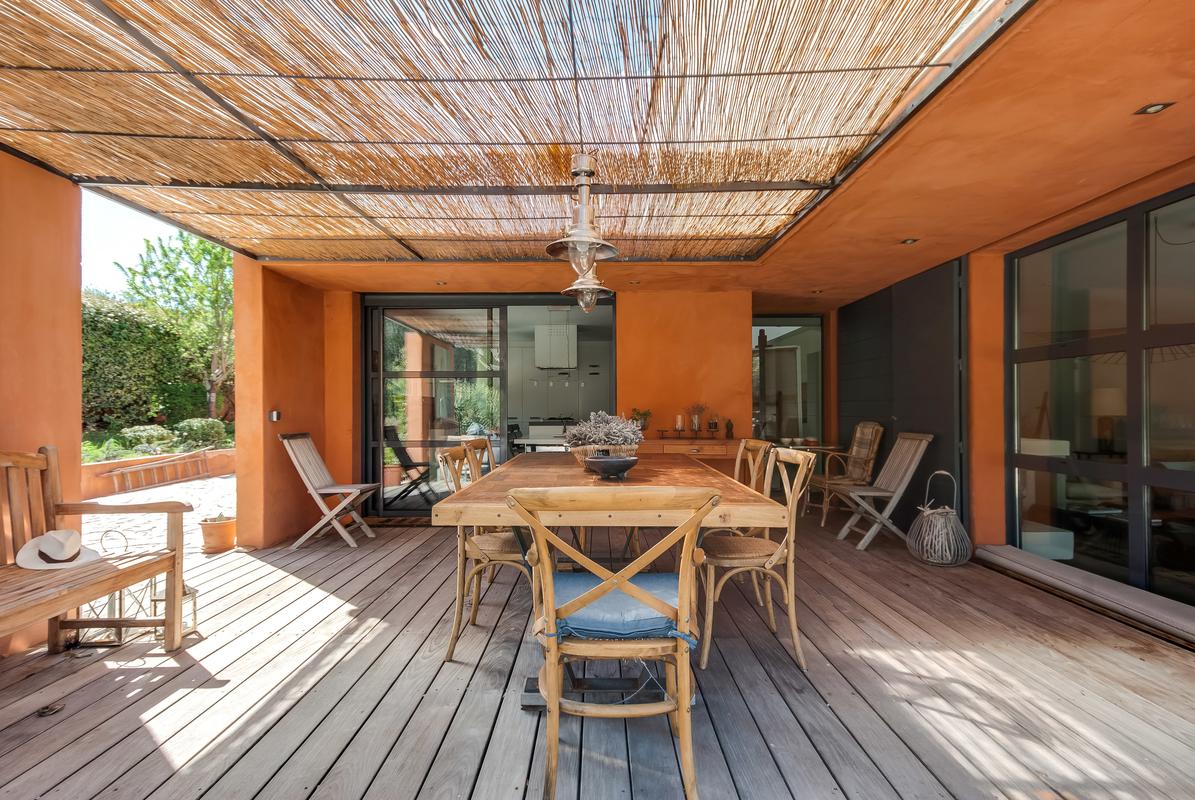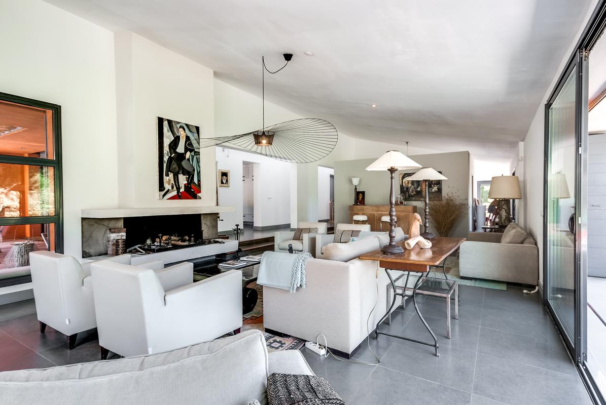 Étonnamment bien intégrée à l’environnement naturel, cette propriété de 5000m2 est une oasis de calme à quelques minutes du centre ville. Niché dans les pins et les oliviers, sa belle couleur ocre se fond dans la verdure. D’immenses baies vitrées brouillent les lignes entre l’extérieur et l’intérieur, augmentant le sens de l’espace et l’harmonie avec la nature