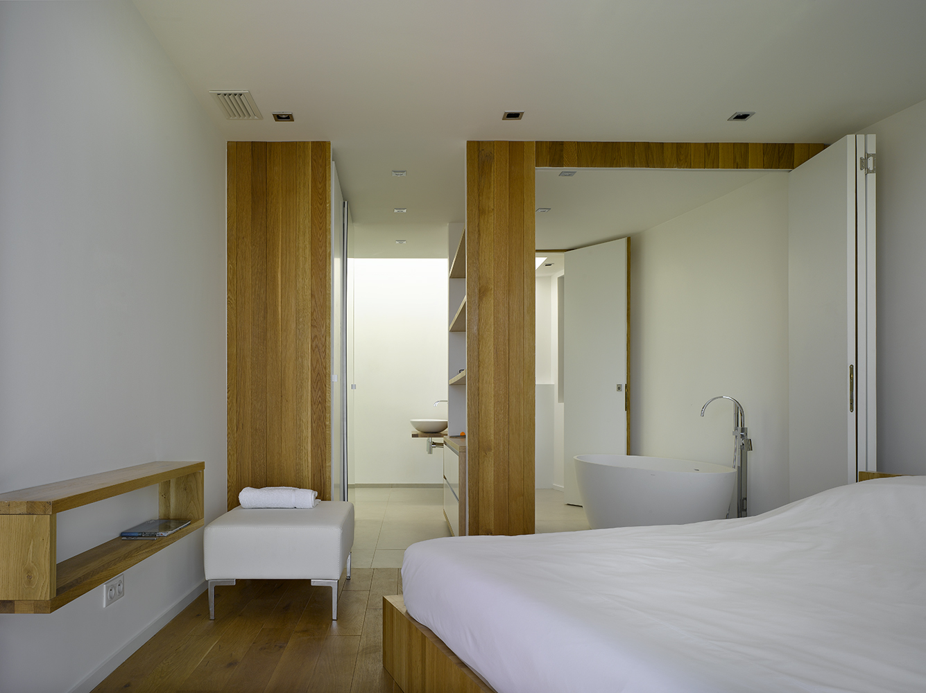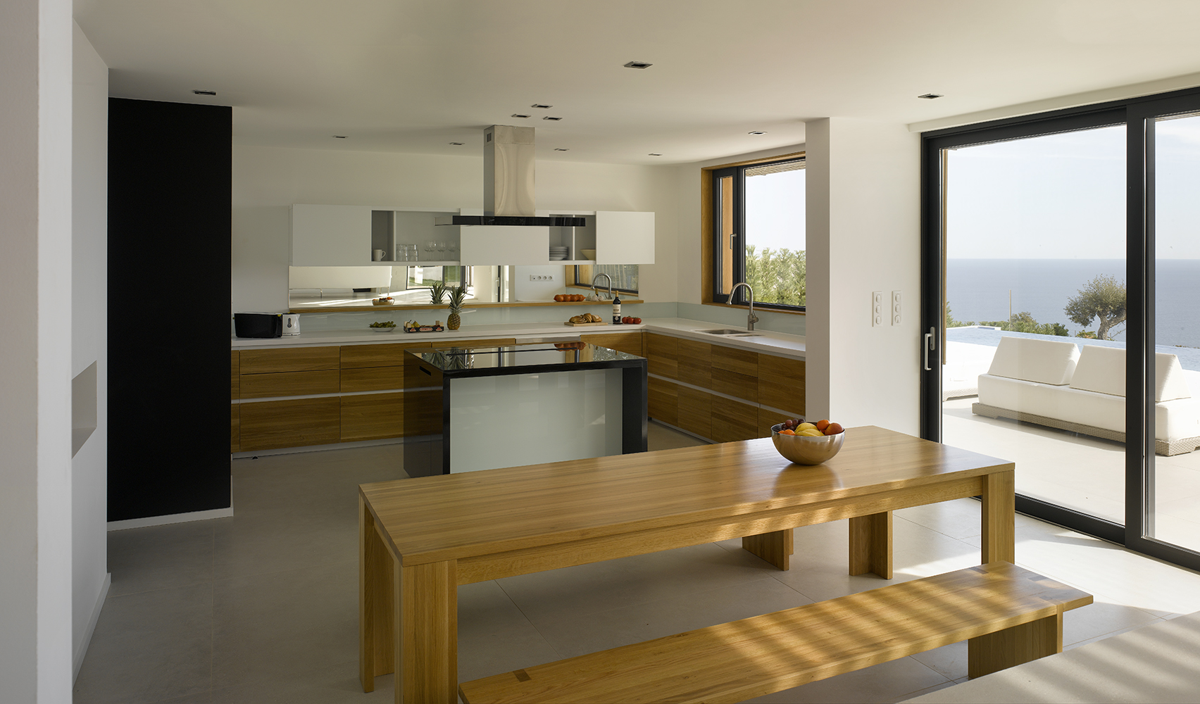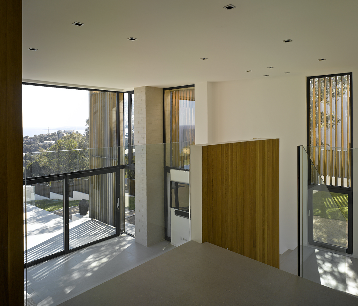 Très spacieuse pour accueillir 8 personnes avec 4 belles chambres en suite avec chacune sa salle de bain, wc. Les chambres situées au niveau supérieur s’ouvrent sur un balcon avec vue mer. De grands espaces vitrés laissent entrer la lumière dans les pièces de vie