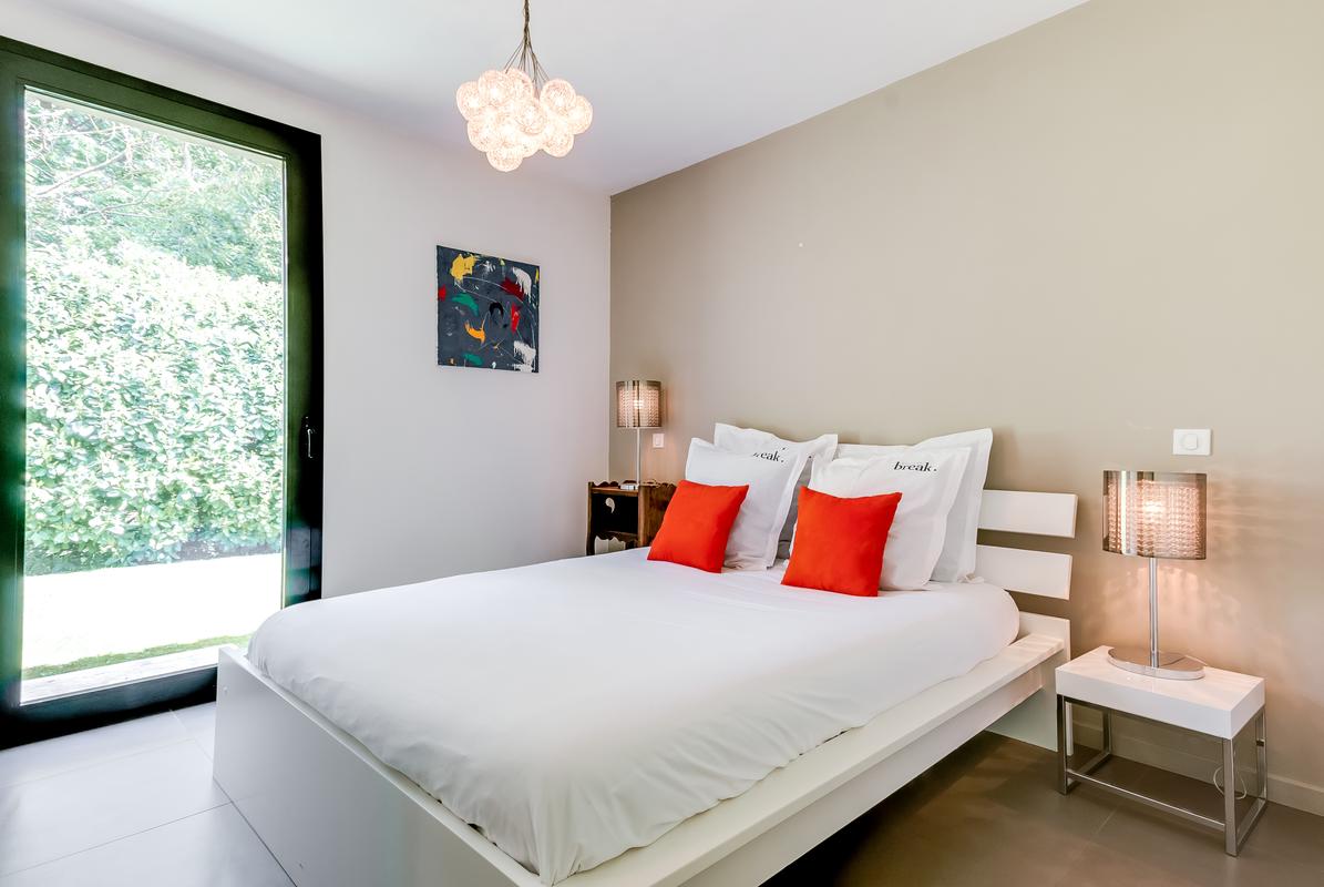 Son emplacement est idéal, à 10 minutes du centre-ville, dans un quartier paisible, entouré de belles villas avec de grands jardins. Le jardin de cette villa s’étend sur 4 000 m2. Bordée d’arbres, clôturée et bordée de haies, elle dispose d’une magnifique piscine privée de 12x4m avec plage submergée et vue dégagée. Il y a une terrasse ombragée en bois pour que vous puissiez dîner à l’extérieur. Un barbecue à gaz est à votre disposition.
