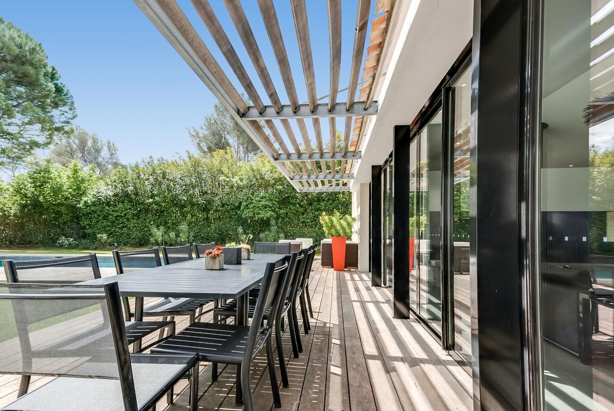 Avec ses tuiles en terre cuite faites à la main, son long bâtiment principal en forme de L et son toit de style génois, cette maison de construction récente possède toutes les caractéristiques d’une maison de campagne provençale. Mais le design et le décor sont résolument actuels, avec toutes les commodités modernes.