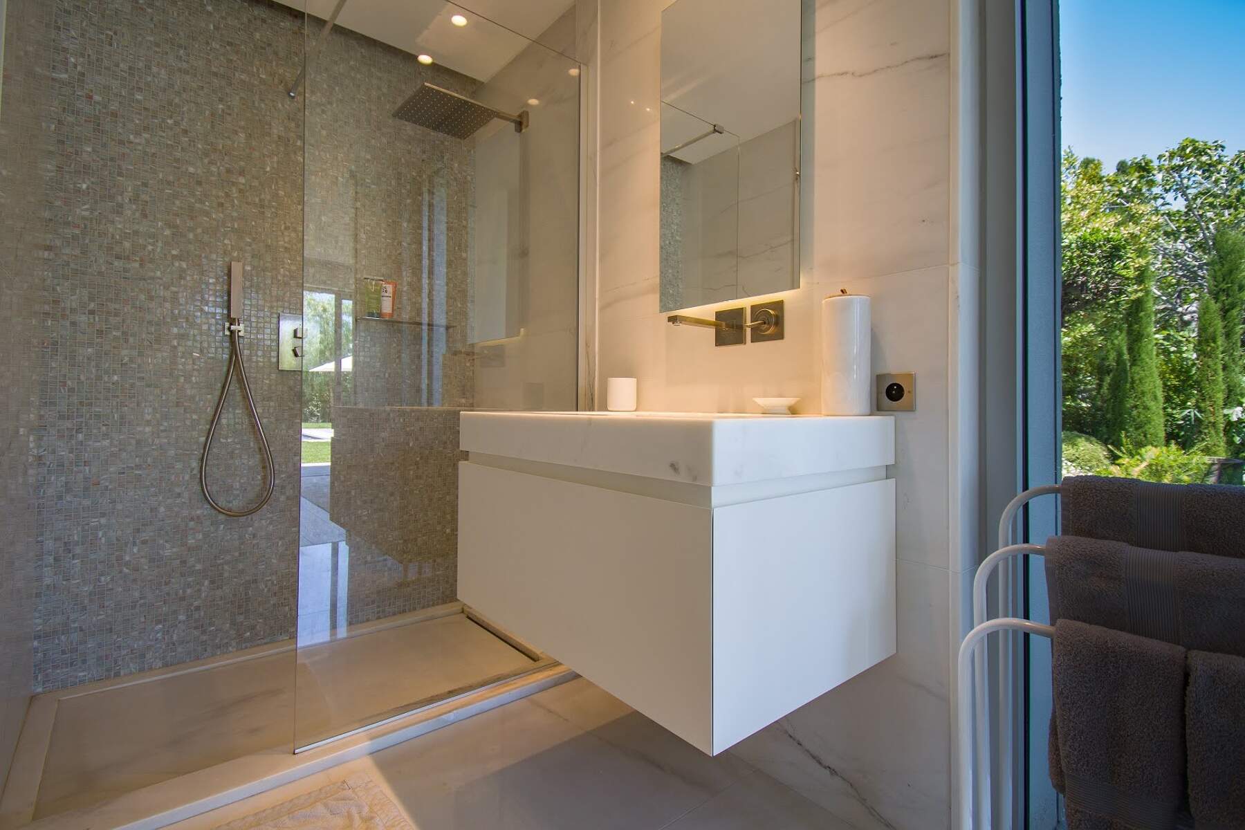 Les pièces sont spacieuses et très lumineuses et la cuisine ouverte est entièrement équipée. Cette luxueuse villa est parfaite pour des vacances en famille ou entres amis et digne d’un cinq étoiles. De plus, la villa Costa possède 5 chambres doubles et 5 salle de bain en suite. Egalement, à votre disposition un bureau.