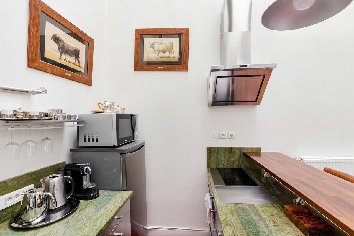 L’immeuble est situé sur le Quai Bourbon de l’Ile Saint Louis, l’une des adresses les plus prestigieuses de Paris, et sans aucun doute un emplacement de choix au centre de la capitale. Vous entrez dans le bâtiment par une magnifique entrée carrosserie. L’appartement se trouve au bout d’une petite cour privée avec banc et plantes.