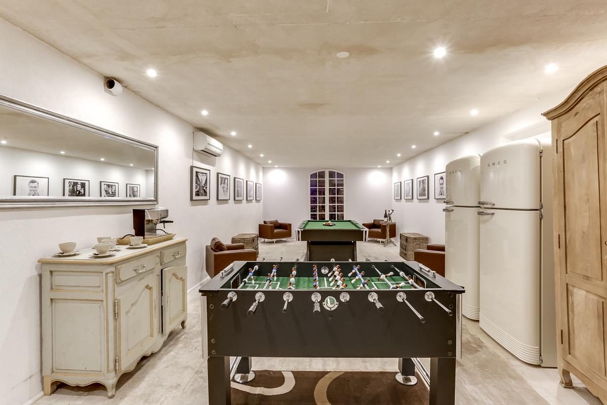 – Garage pour une voiture, avec une salle de jeux avec billard et baby-foot, deux réfrigérateurs supplémentaires et une cave à vin