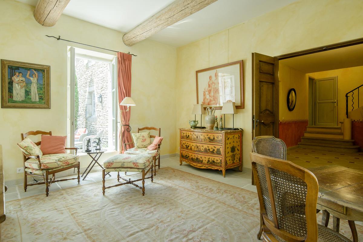 Cette magnifique propriété, véritable maison de campagne en pierre sèche entièrement rénovée, vous plonge dans l’atmosphère super exclusive du Luberon. C’est à Gordes, à deux pas du centre du village : un cadre provençal authentique ! Oliviers et cyprès, rosiers, rosiers, fontaine, terrasse ombragée sous la pergola…. le jardin est impeccablement entretenu, et la piscine de 12x7m semble indispensable par temps très chaud. Un ameublement élégant et un décor raffiné caractérisent les intérieurs de cette maison de campagne spacieuse et accueillante. Un salon centré sur un foyer au bois, une salle à manger et une belle cuisine entièrement équipée : tous ces espaces de vie s’ouvrent directement sur l’extérieur. Les six chambres, dont quatre en suite, sont réparties entre le rez-de-chaussée et le 1er étage, chacune décorée dans des tons différents : un charme sans pareil ! Mise en page: